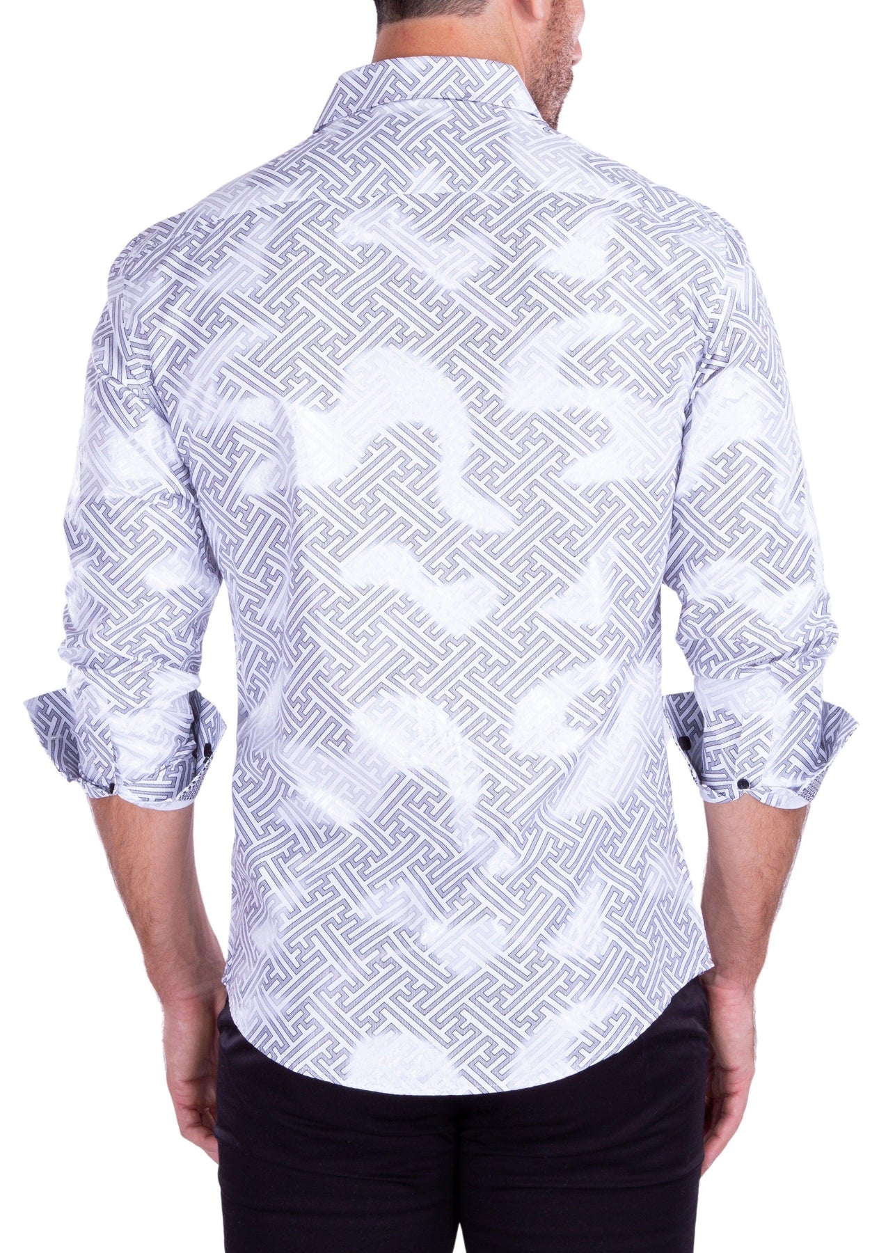 Maze Pattern Metallic Accent Long Sleeve Dress Shirt White