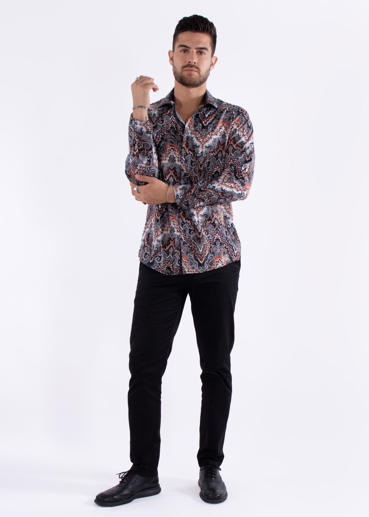 Our signature dress shirts - popular for a reason. Like our name suggests, Bespoke is committed to offering apparel that may as well be tailor made just for you. The Modern Fit is a hybrid between Slim and Classic Fit. With one-of-a-kind patterns, you’re sure to stand out at the next office Happy Hour. Style with a jacket or wear by itself.
