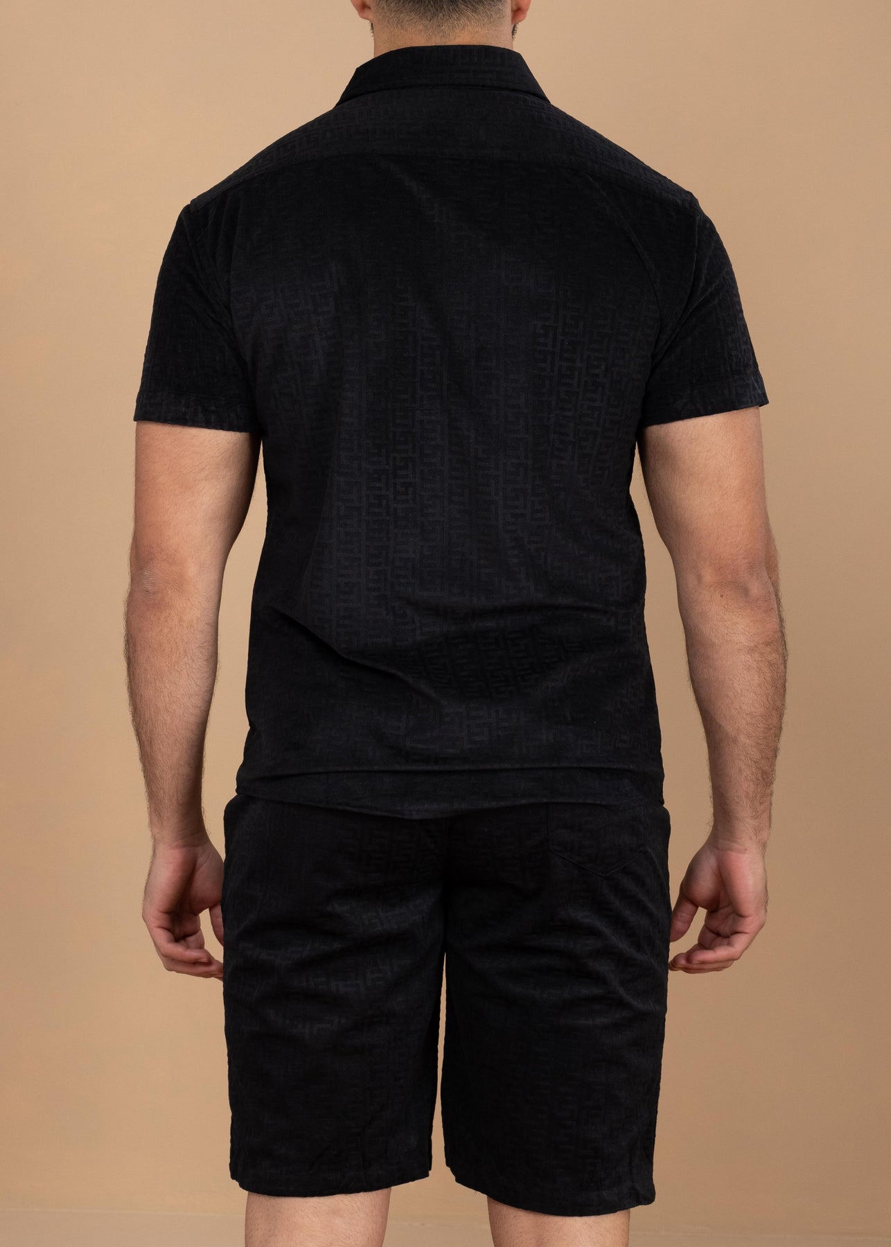 Textured Jacquard Greek Pattern Shirt & Shorts Set