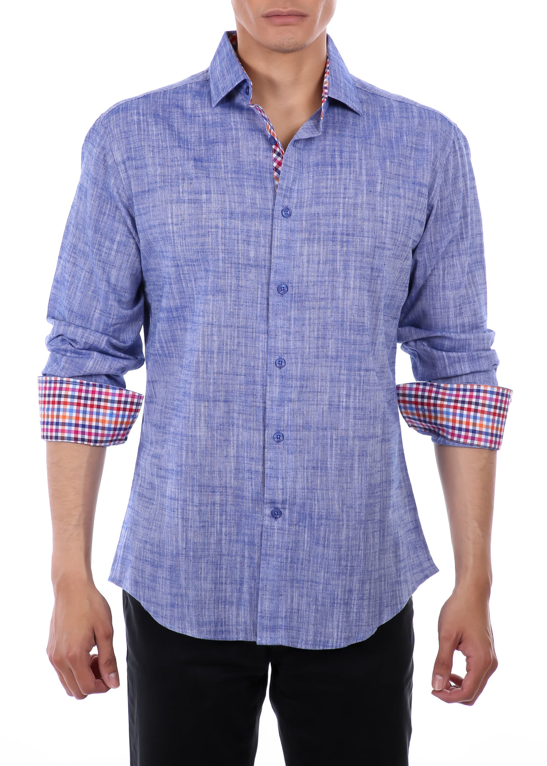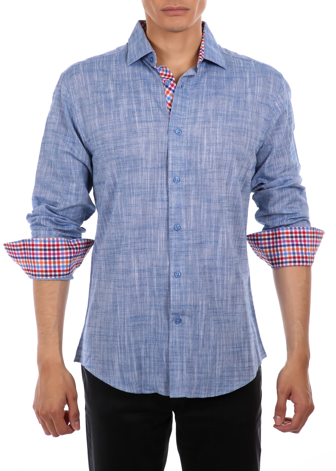 Men's Essentials Classic Solid Blue Linen Long Sleeve