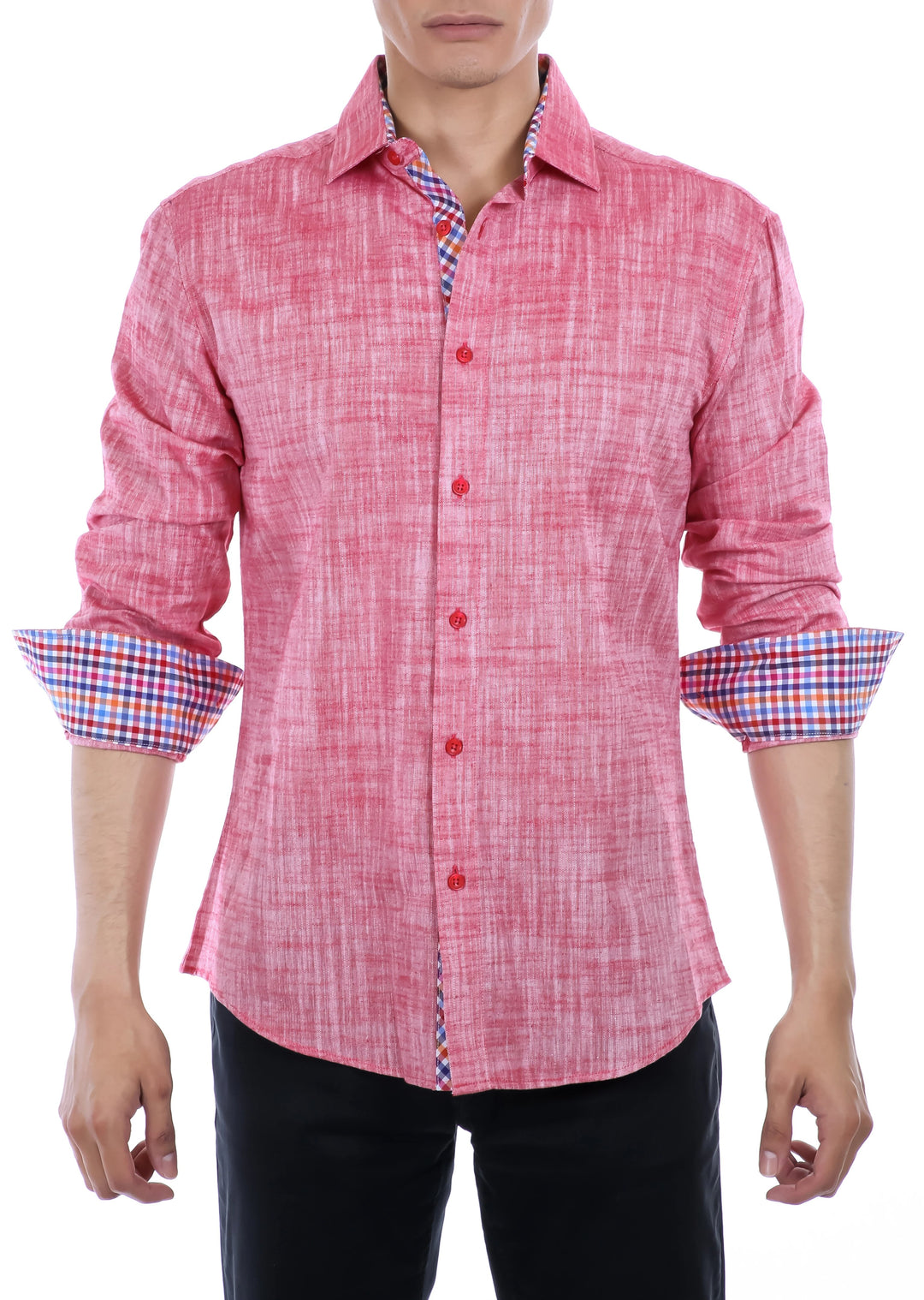 Men's Essentials Classic Solid Red Linen Long Sleeve