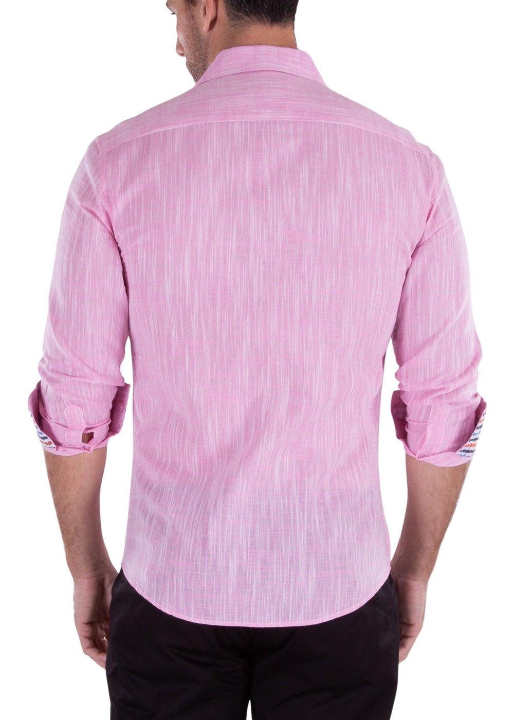 Men's Essentials Classic Solid Pink Linen Long Sleeve