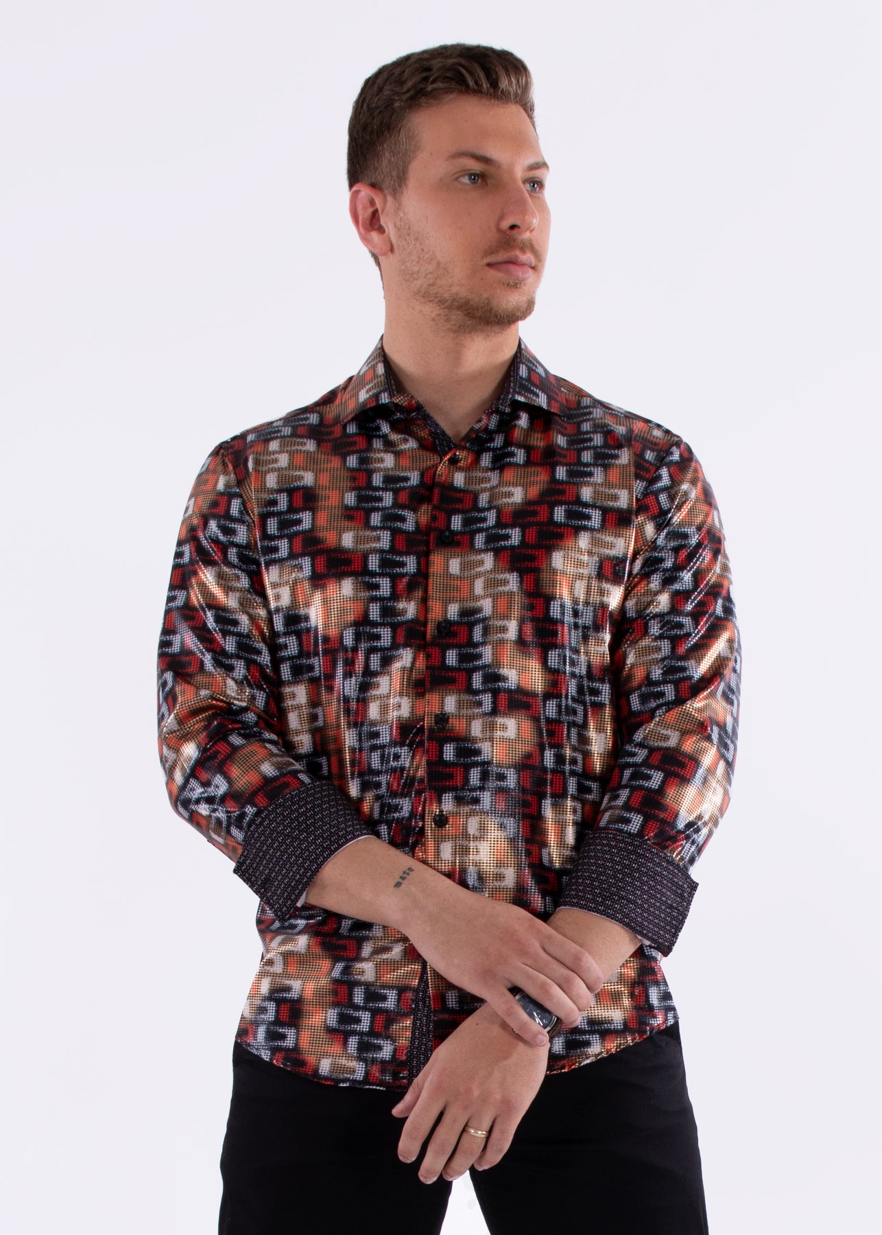 Shiny Geo Print Long Sleeve Dress Shirt