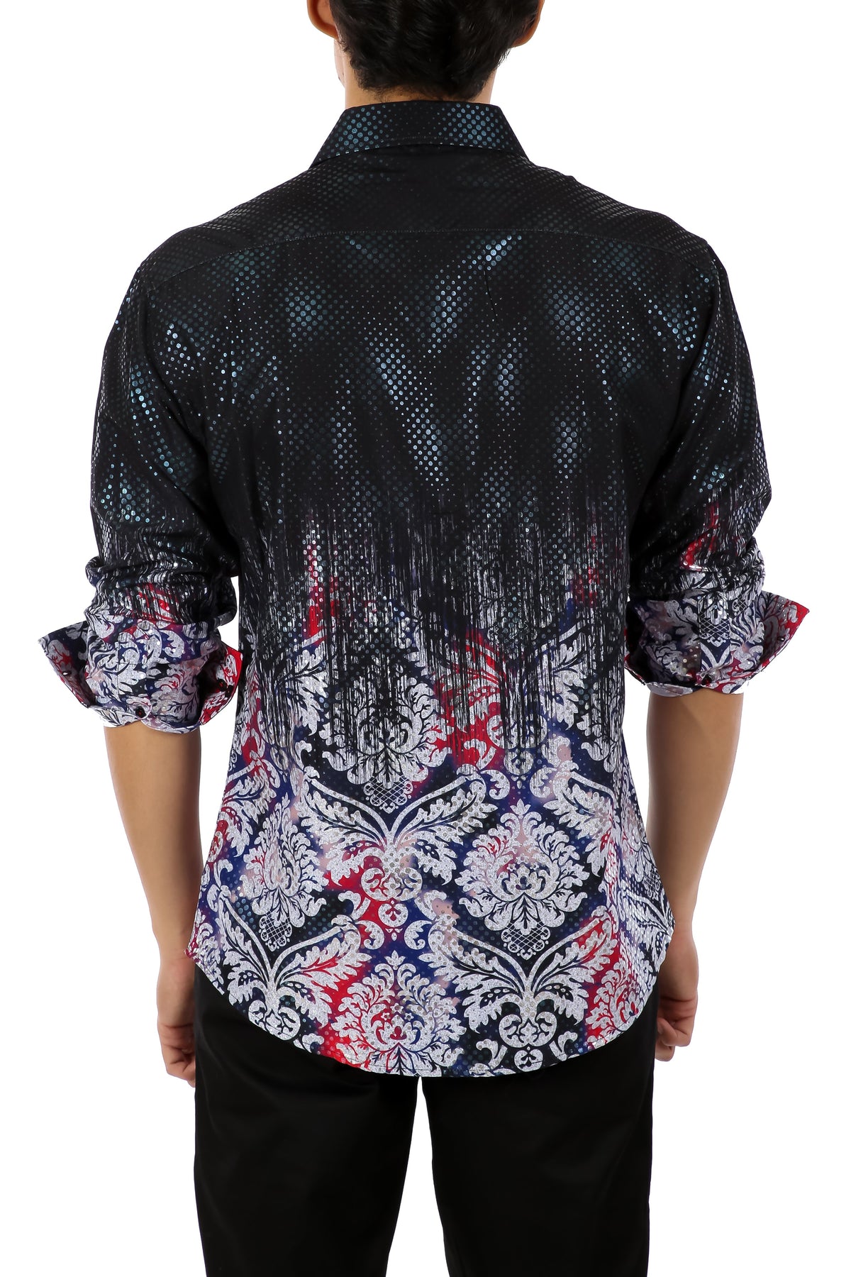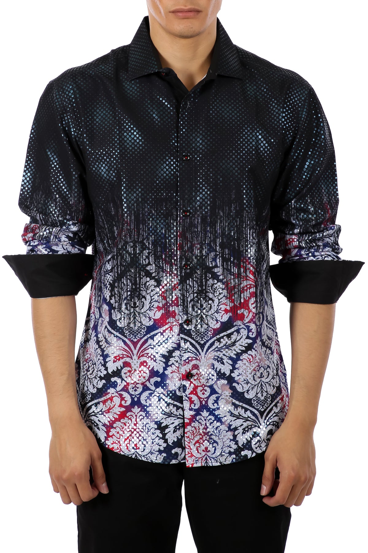 Metallic Halftone Effect Long Sleeve Dress Shirt Black