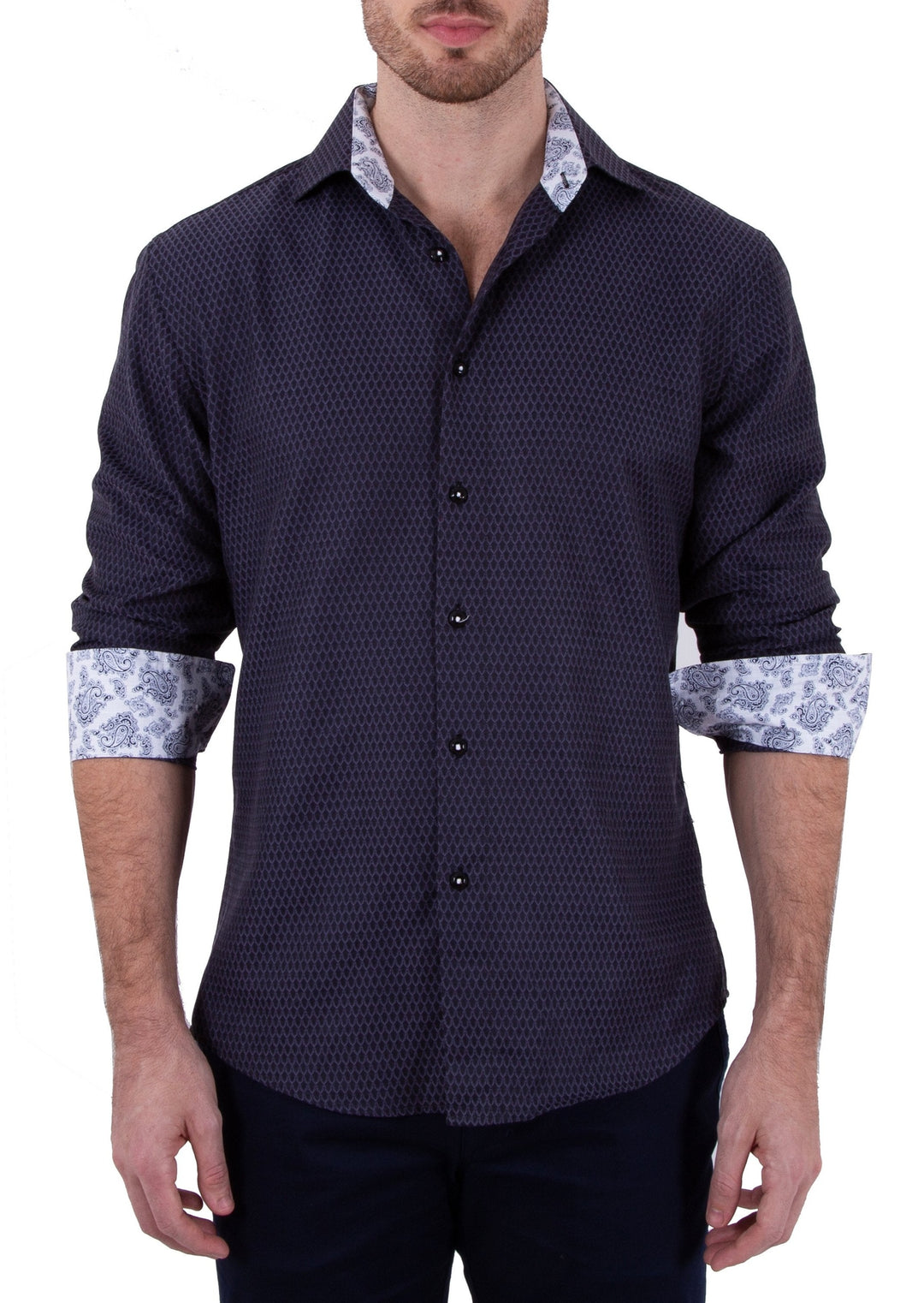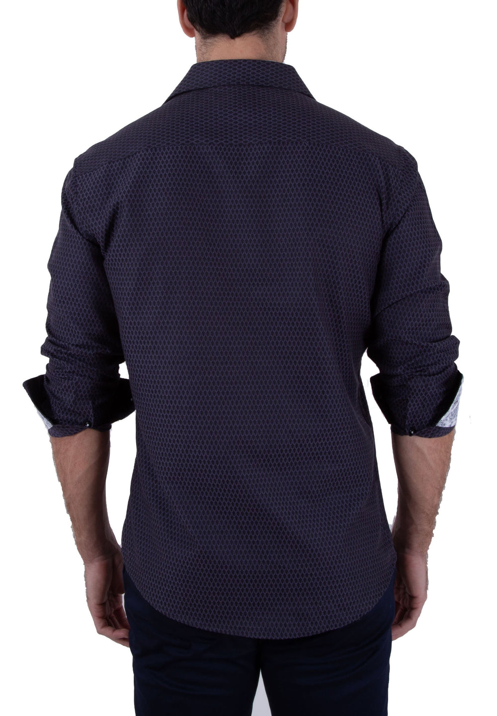 Maze Pattern Metallic Accent Long Sleeve Dress Shirt Black