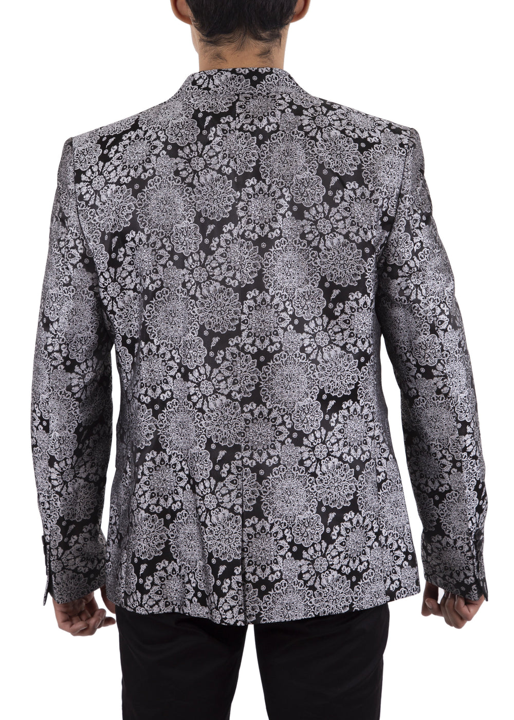 Acanthus Leaf Pattern Evening Blazer Royal Blue