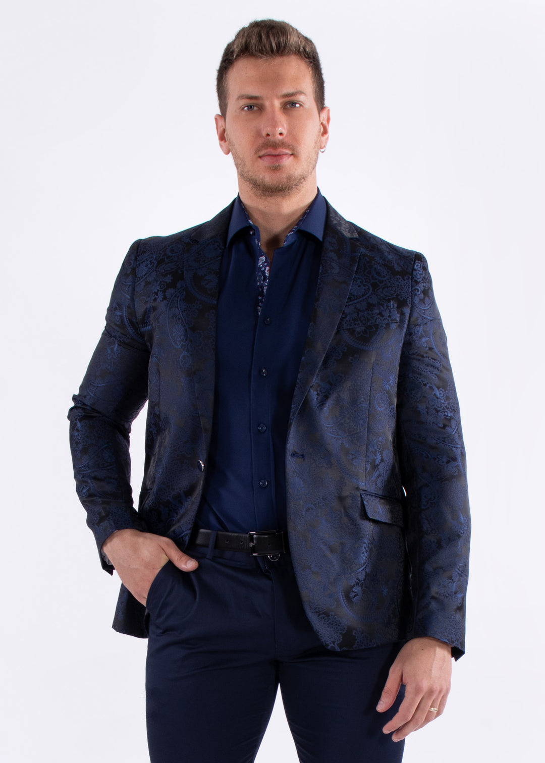 Navy Jacquard Evening Blazer