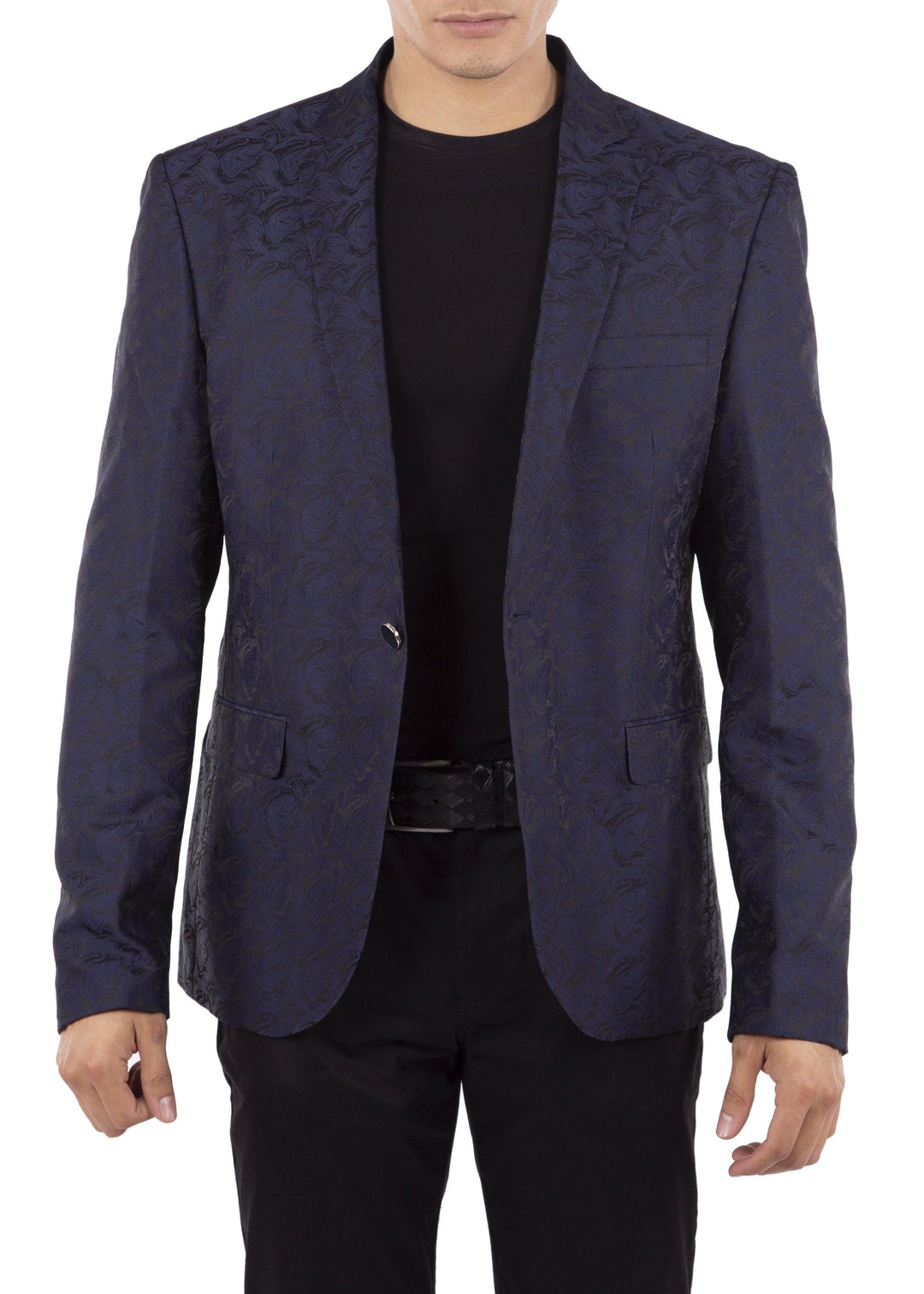 Brocade Smoke Pattern Evening Blazer Navy