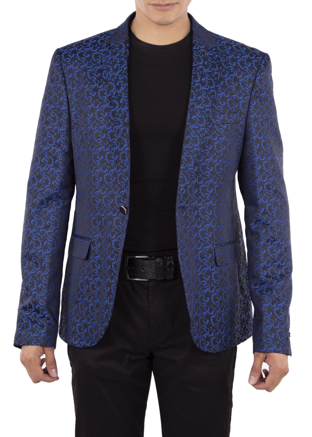 Acanthus Leaf Pattern Evening Blazer Royal Blue