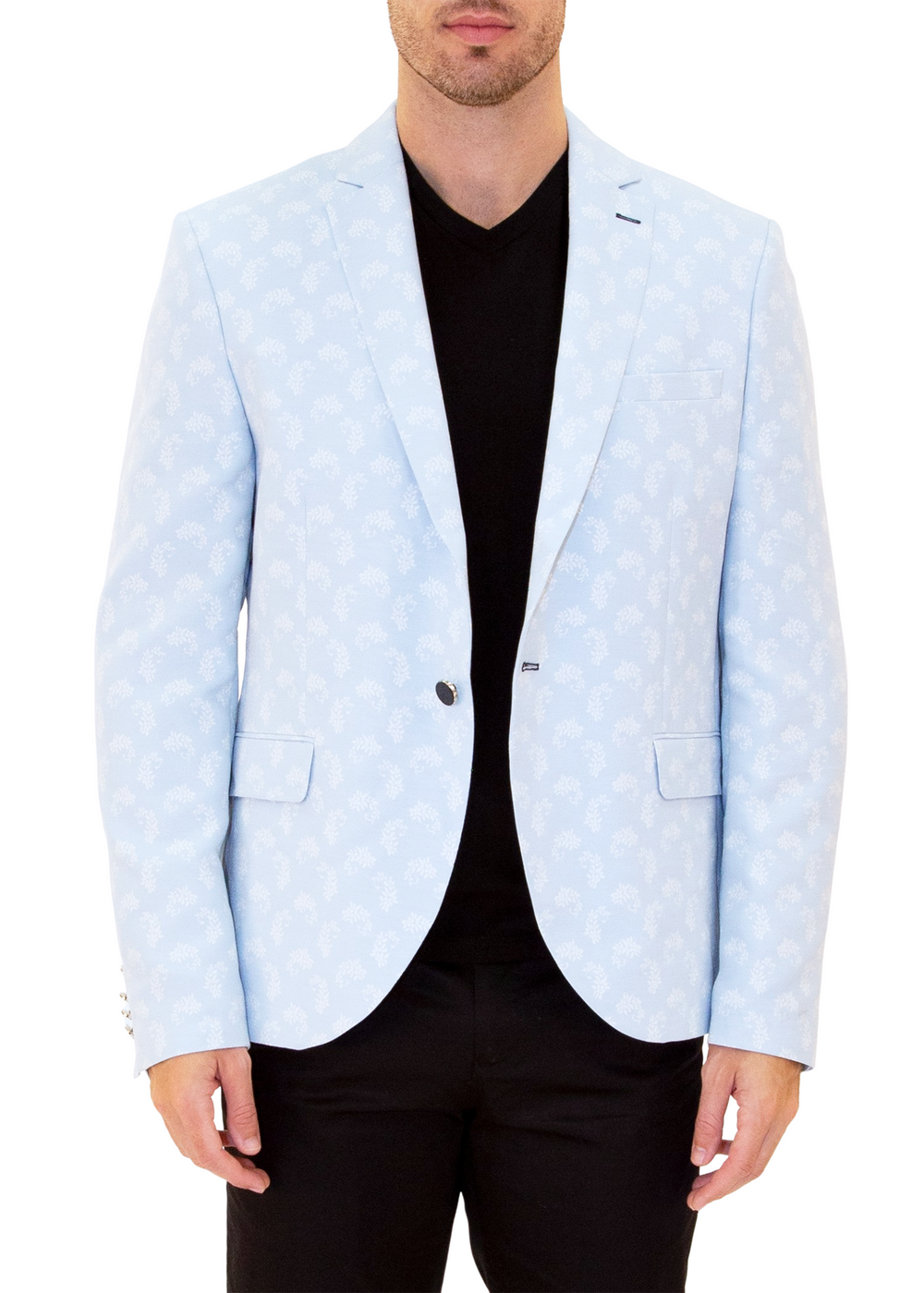 Flower Sprig Pattern Evening Blazer Blue