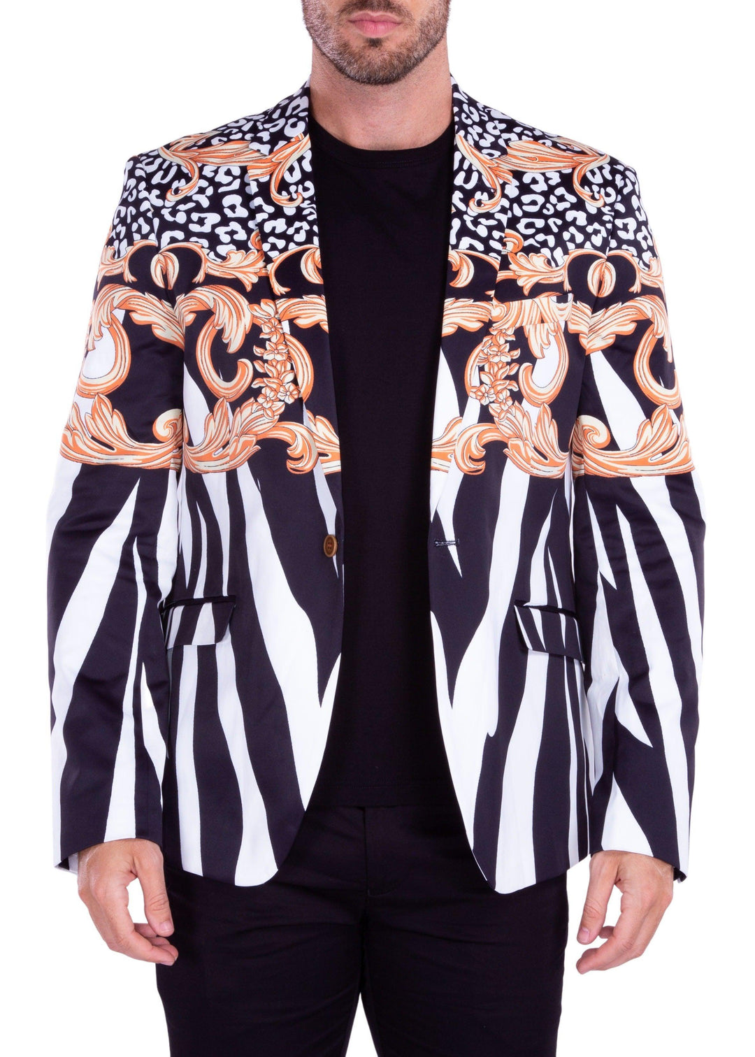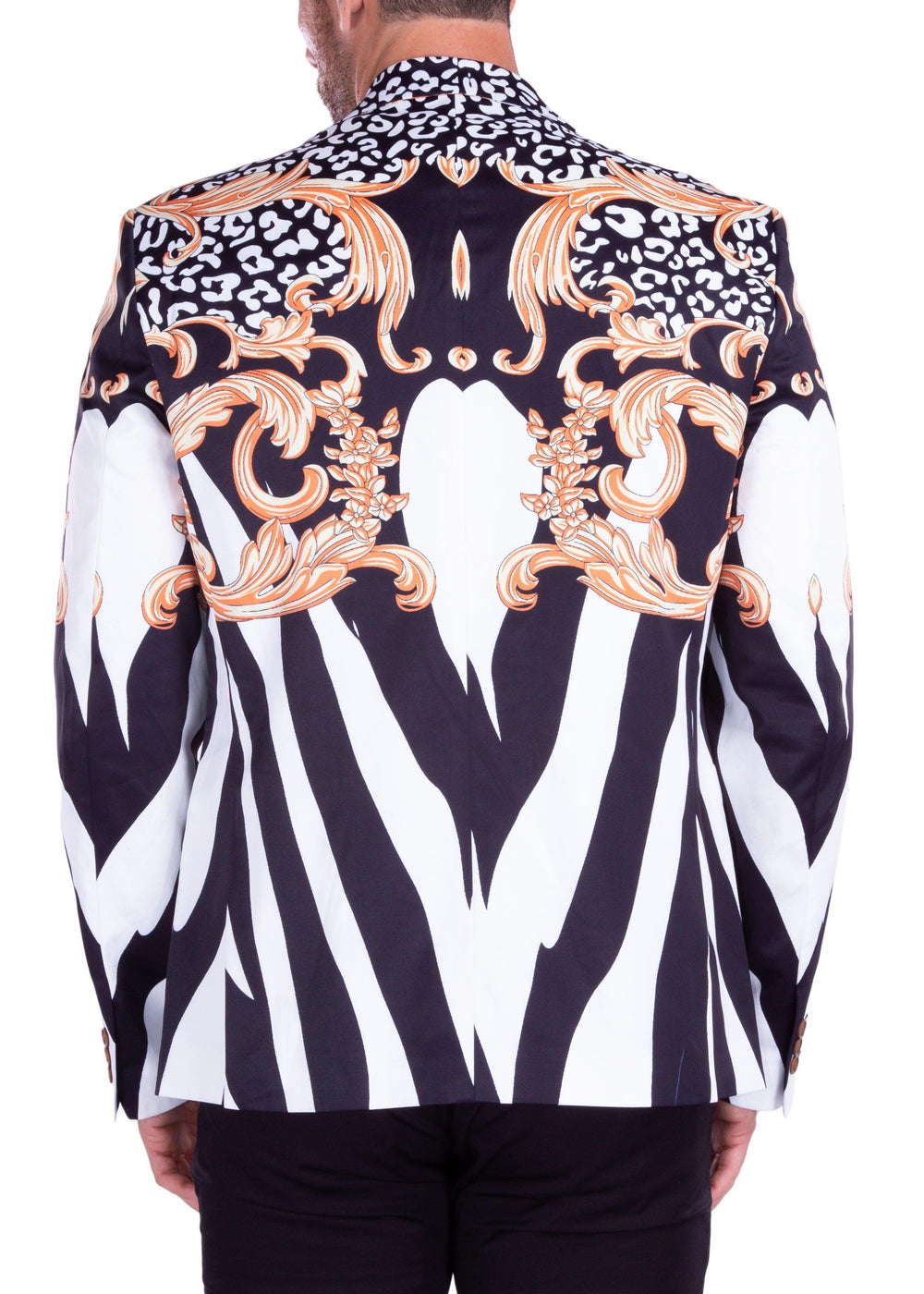 Zebra Pattern Leopard Flourish Detail Evening Blazer White