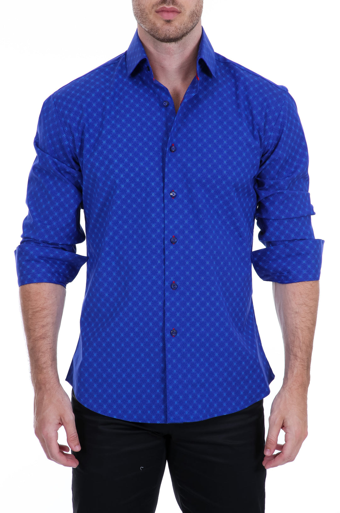 Intertwined Circular Pattern Long Sleeve Dress Shirt Blue