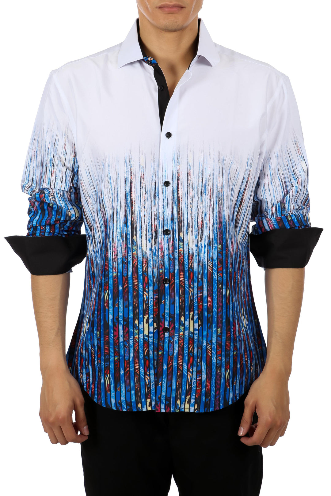 Blue Brush Strokes Long Sleeve Dress Shirt