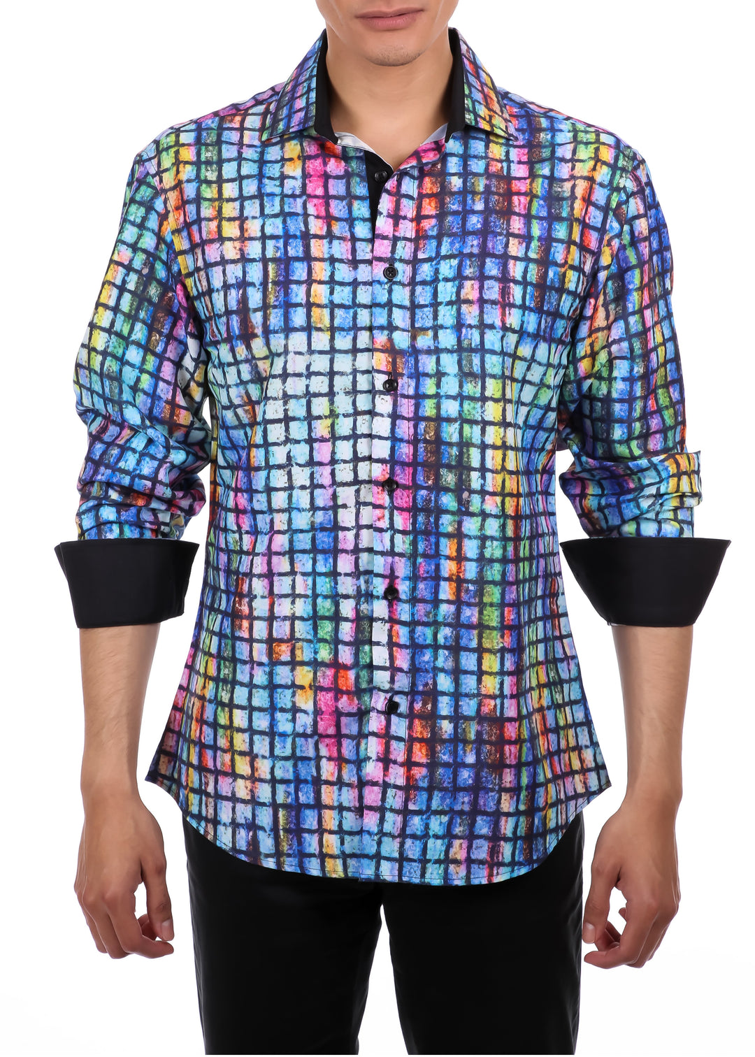 Blue Multicolor Spirals Long Sleeve Dress Shirt