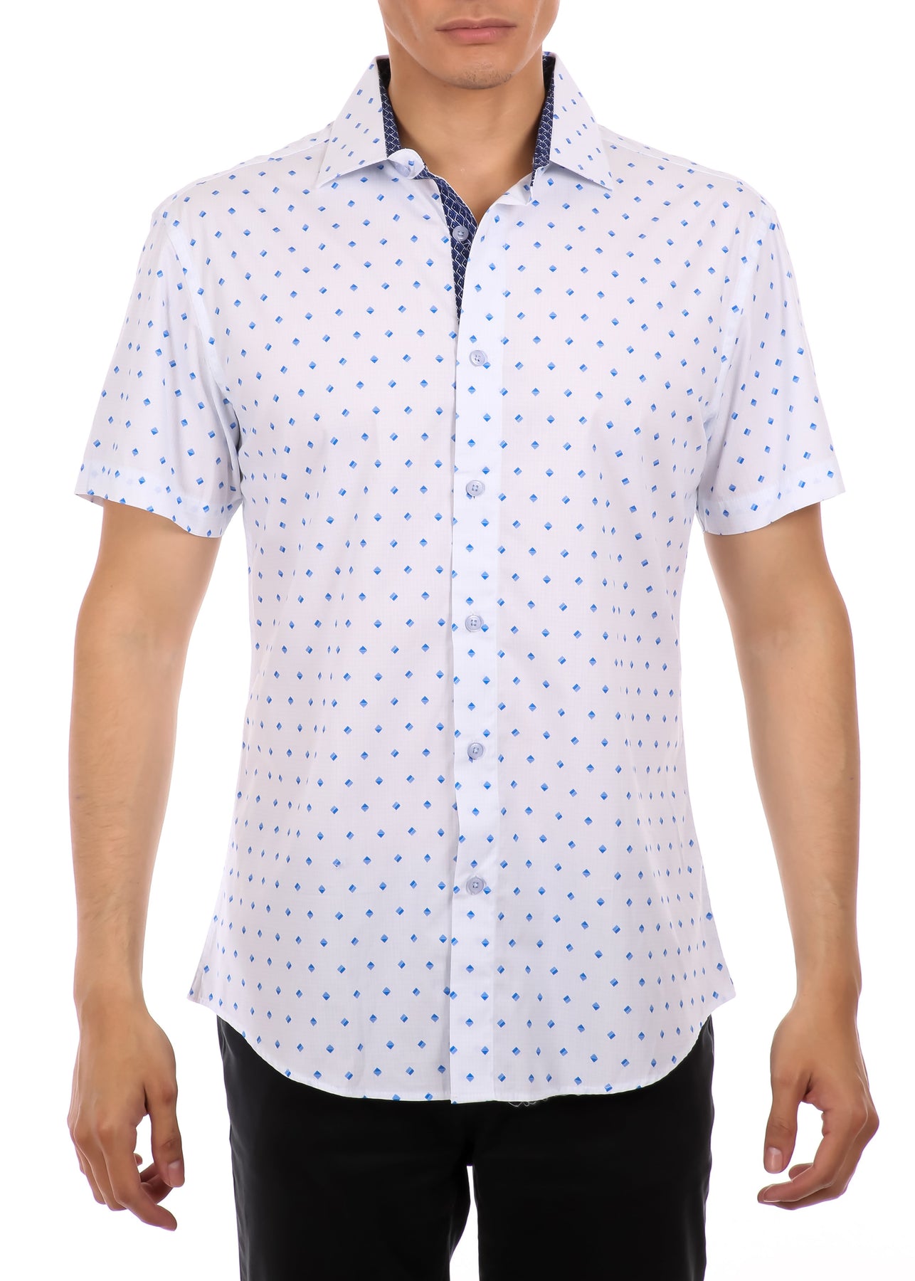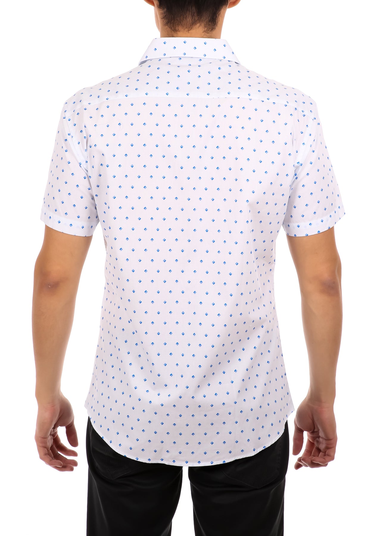 202122 - Men's Blue Button Up Short Sleeve Dress Shirt