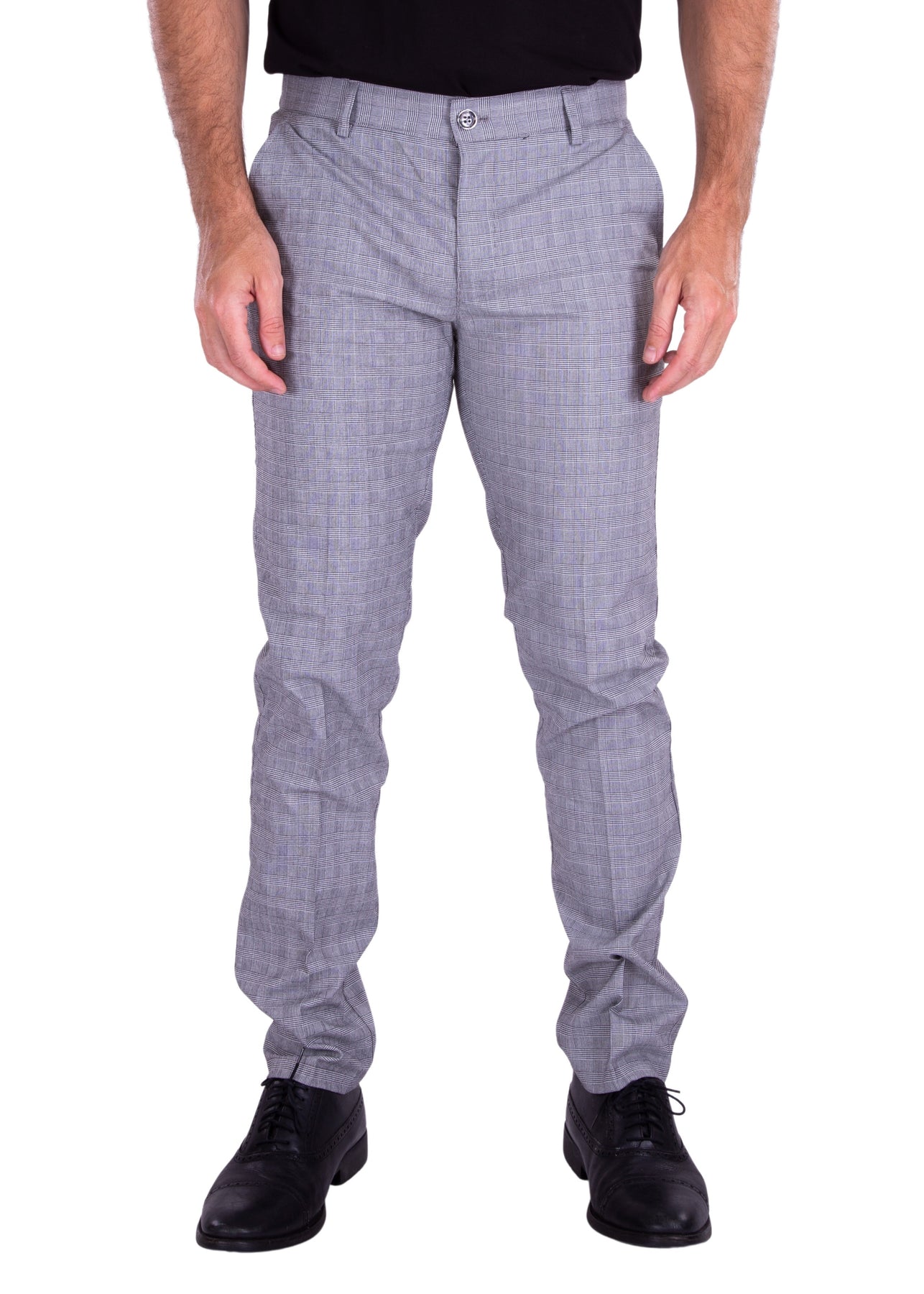 Subtle Gray Plaid on Black Modern Fit Men's Long Dress Pants