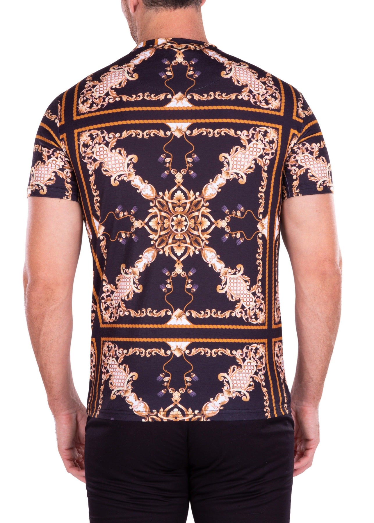 Abstract Gold Kaleidoscope Bold Printed All-Over Graphic Tee Black