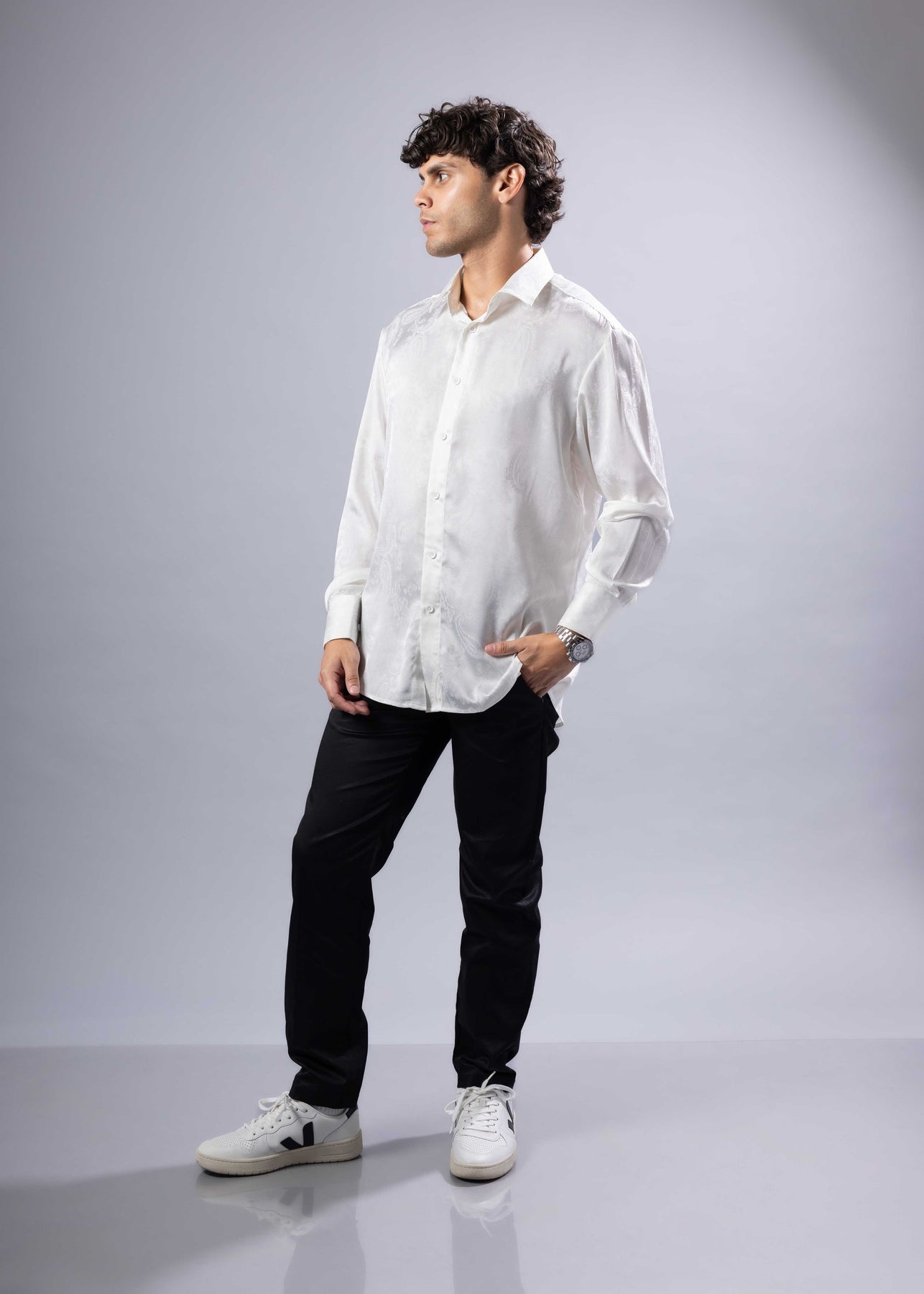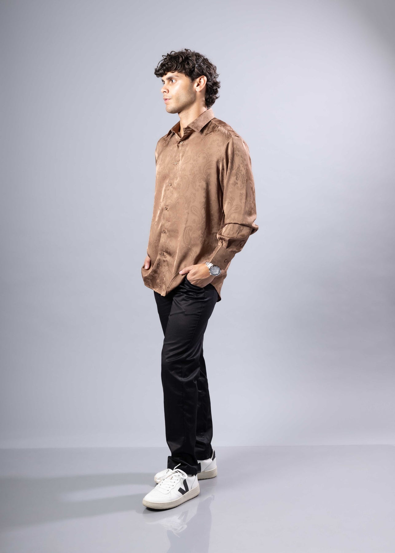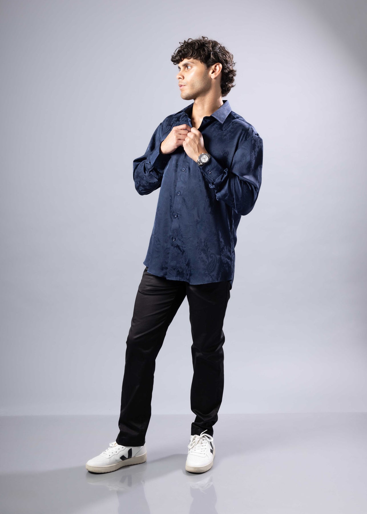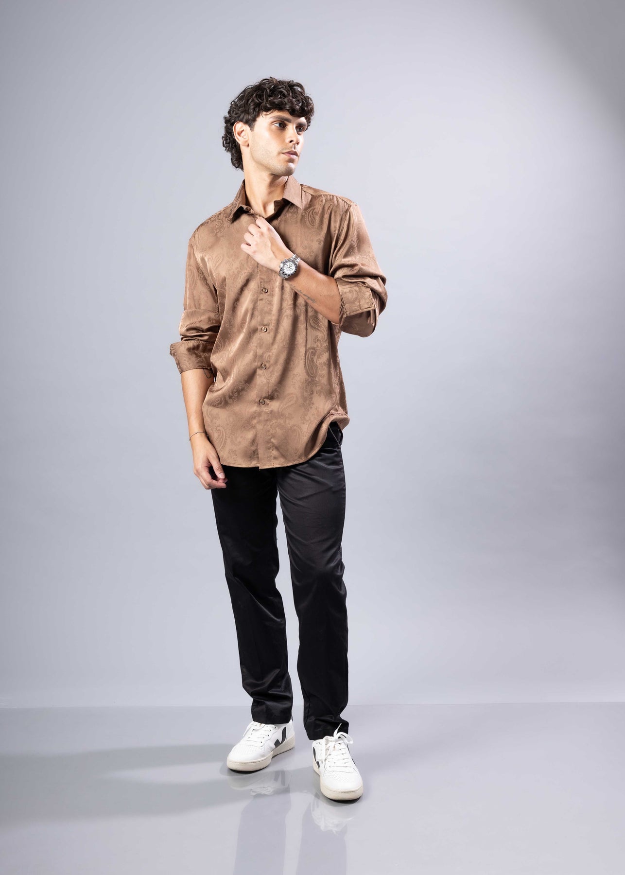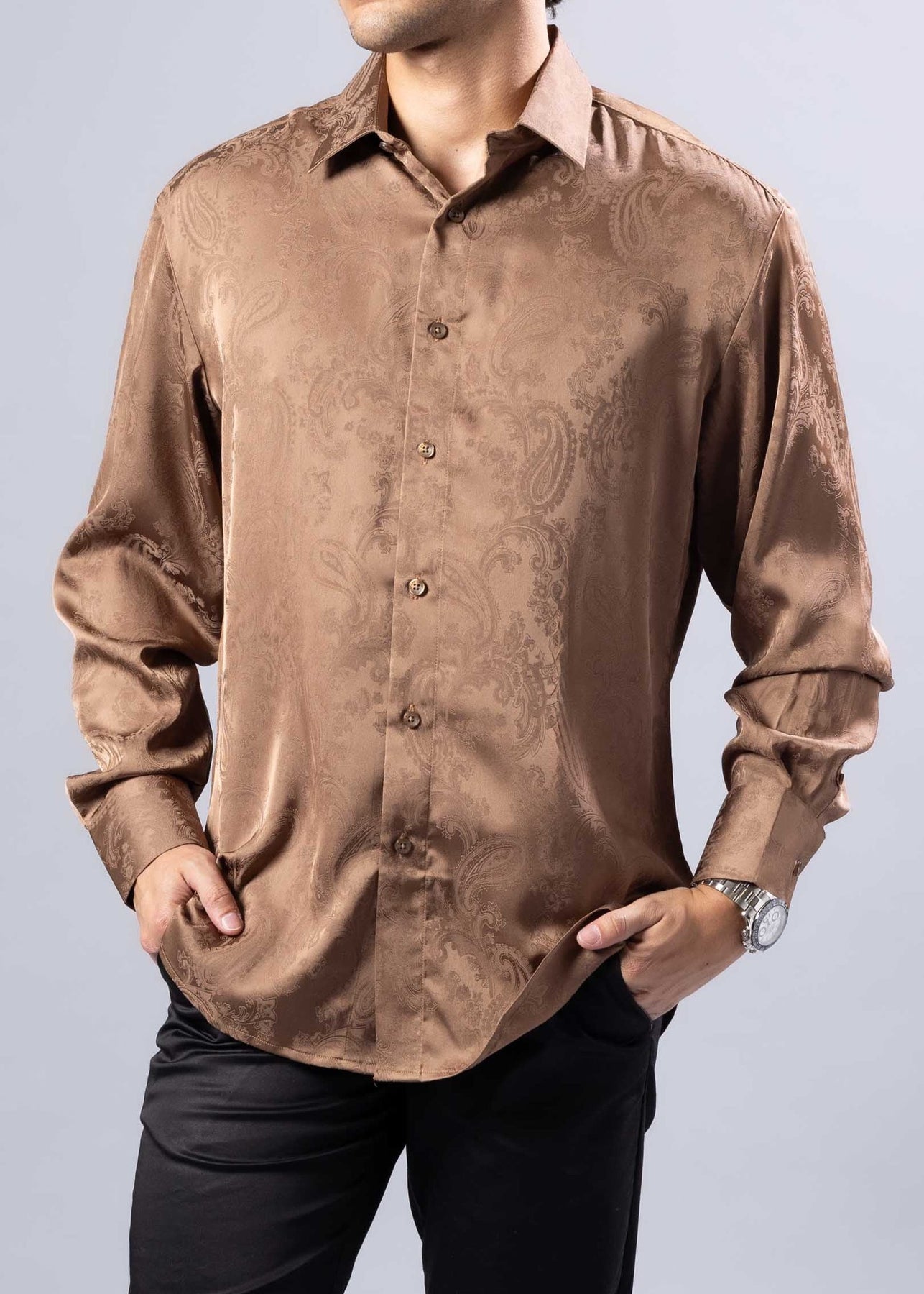 Add subtle flair to your wardrobe with this long sleeve dress shirt, featuring a woven paisley texture that elevates any look. Designed for comfort and sophistication, it’s ideal for nights out, special events, or styled casually with denim.