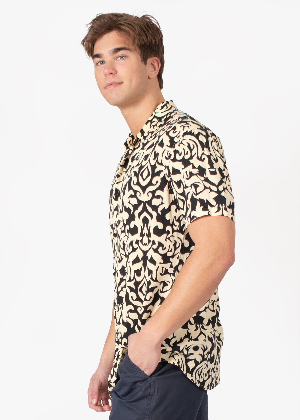 Short Sleeve Dress Shirt with Abstract Paisley Print