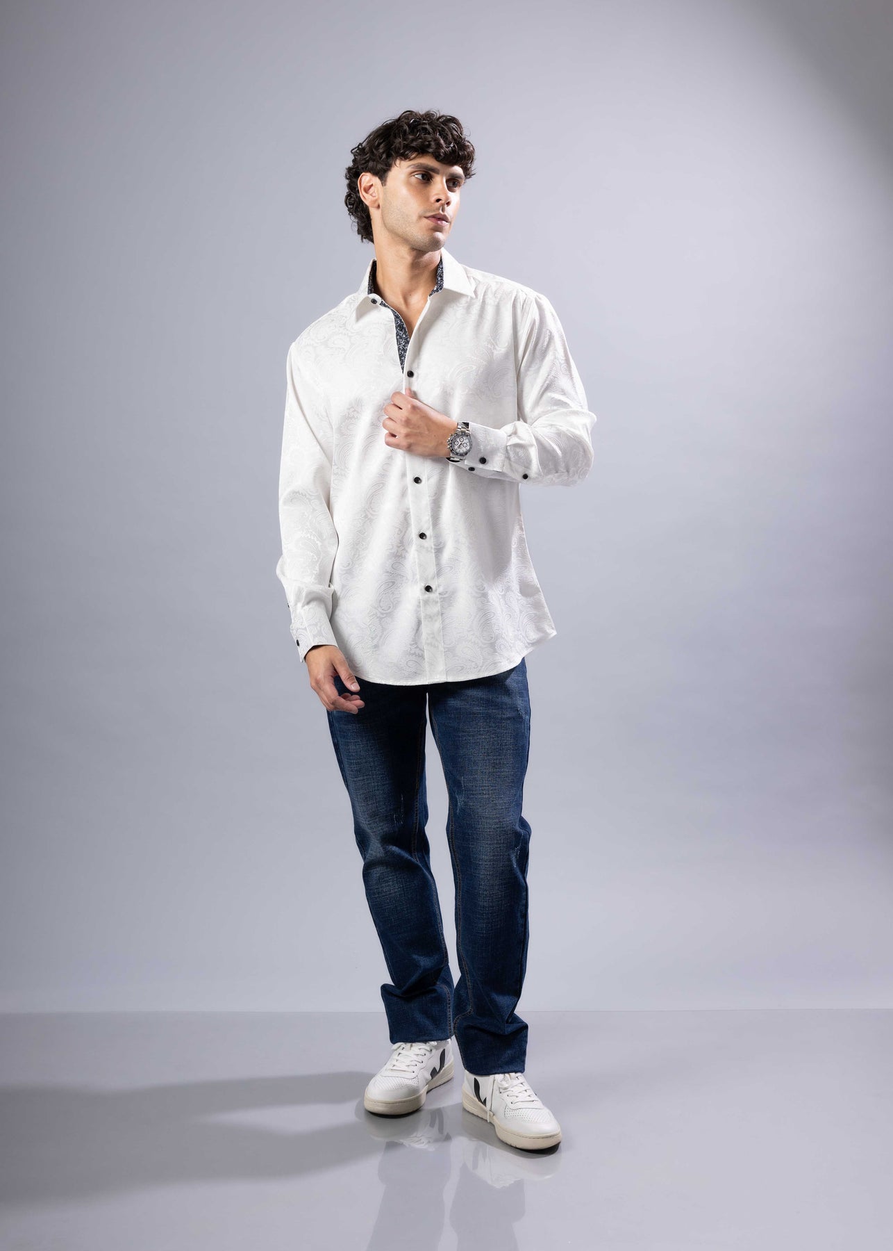 Elevated Jacquard Button-Up Shirt with Contrast Cuffs – Modern Fit