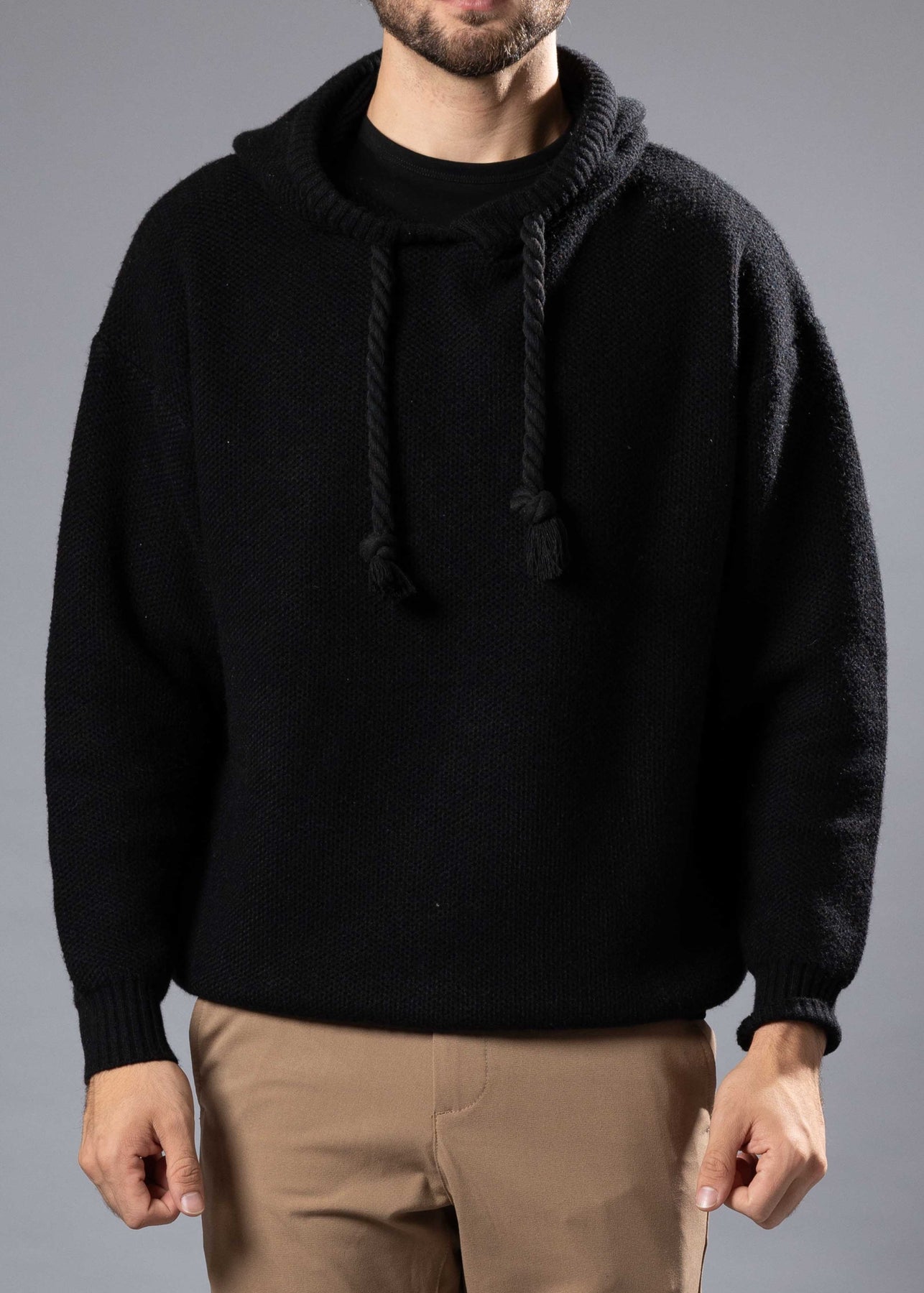 Laid-back comfort meets standout texture. This chunky knit hoodie features a cozy, heavyweight feel with a deep tone and thick rope-style drawcords for a bold, streetwear-ready look. Whether you're layering up for chilly days or keeping it casual, this pullover delivers serious style and warmth.