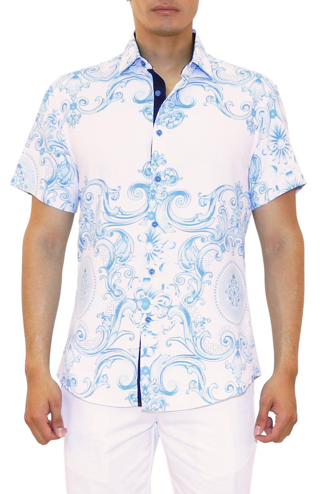 Blue Symmetrical Damask Short Sleeve Dress Shirt