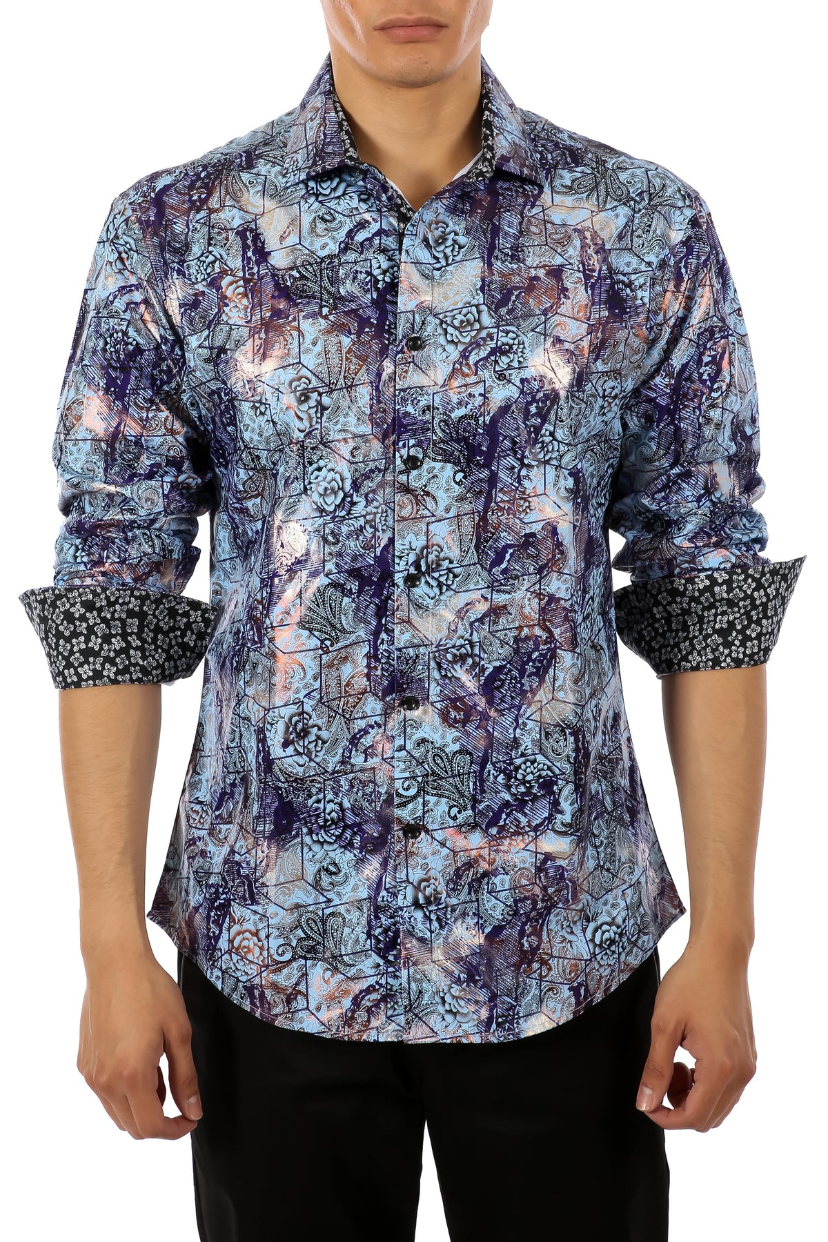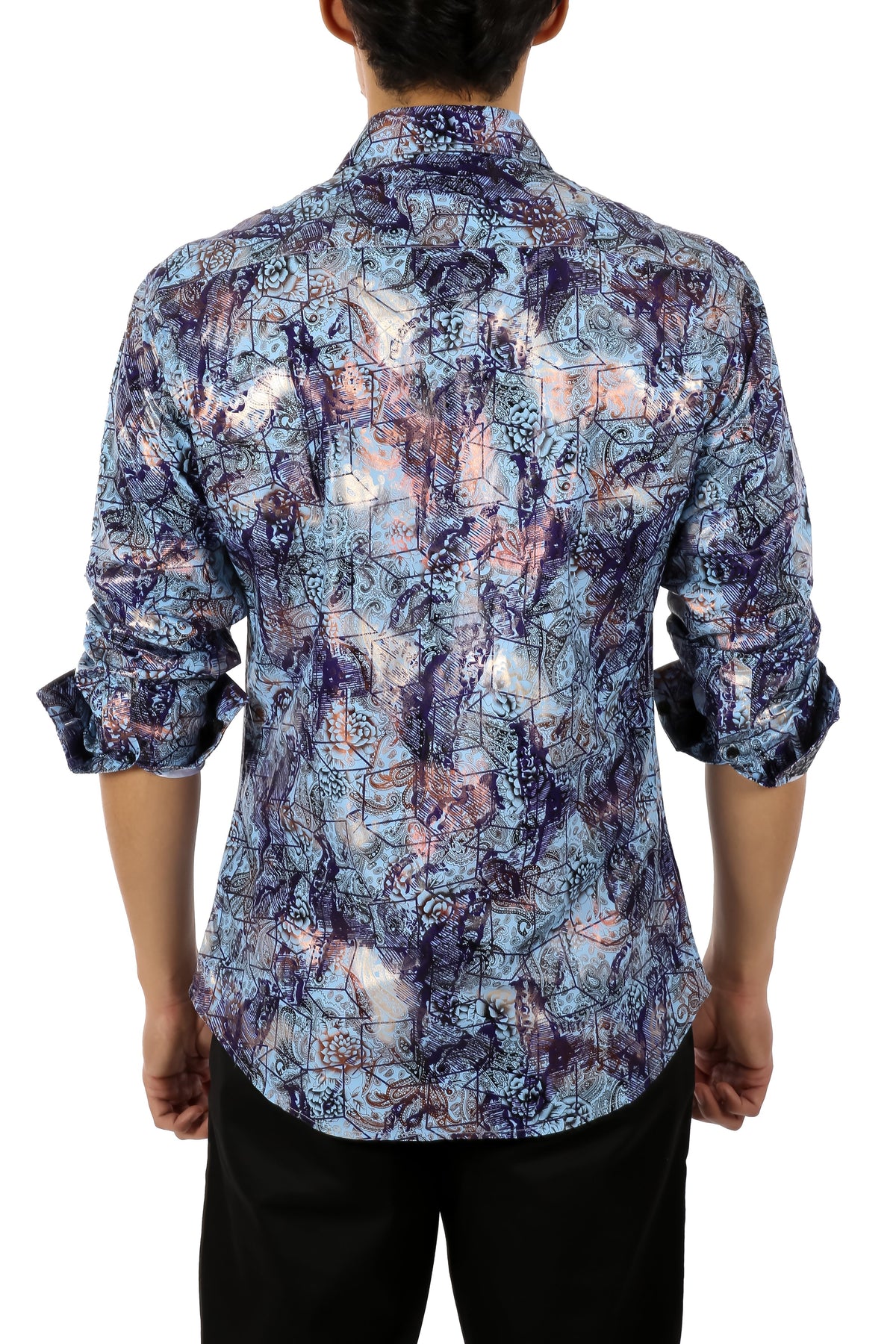 192465 - Metallic Accent Long Sleeve Dress Shirt Blue