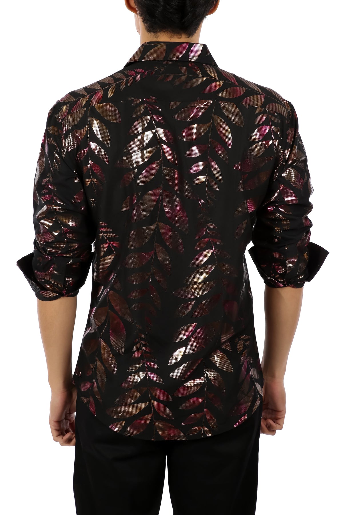 Metallic Leaves Long Sleeve Dress Shirt Black