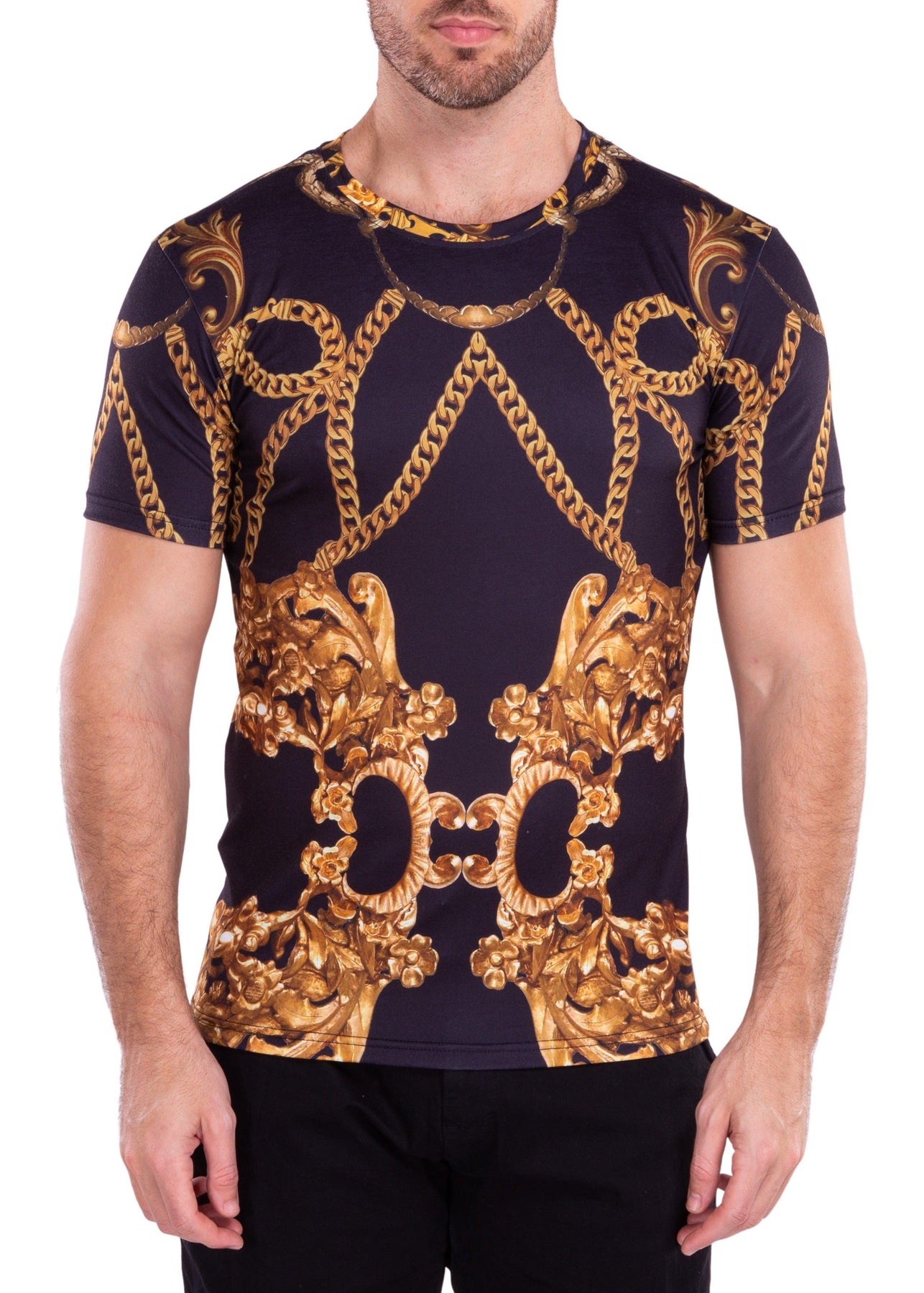 Mirrored Gold Chains Bold Printed All-Over Graphic Tee Black