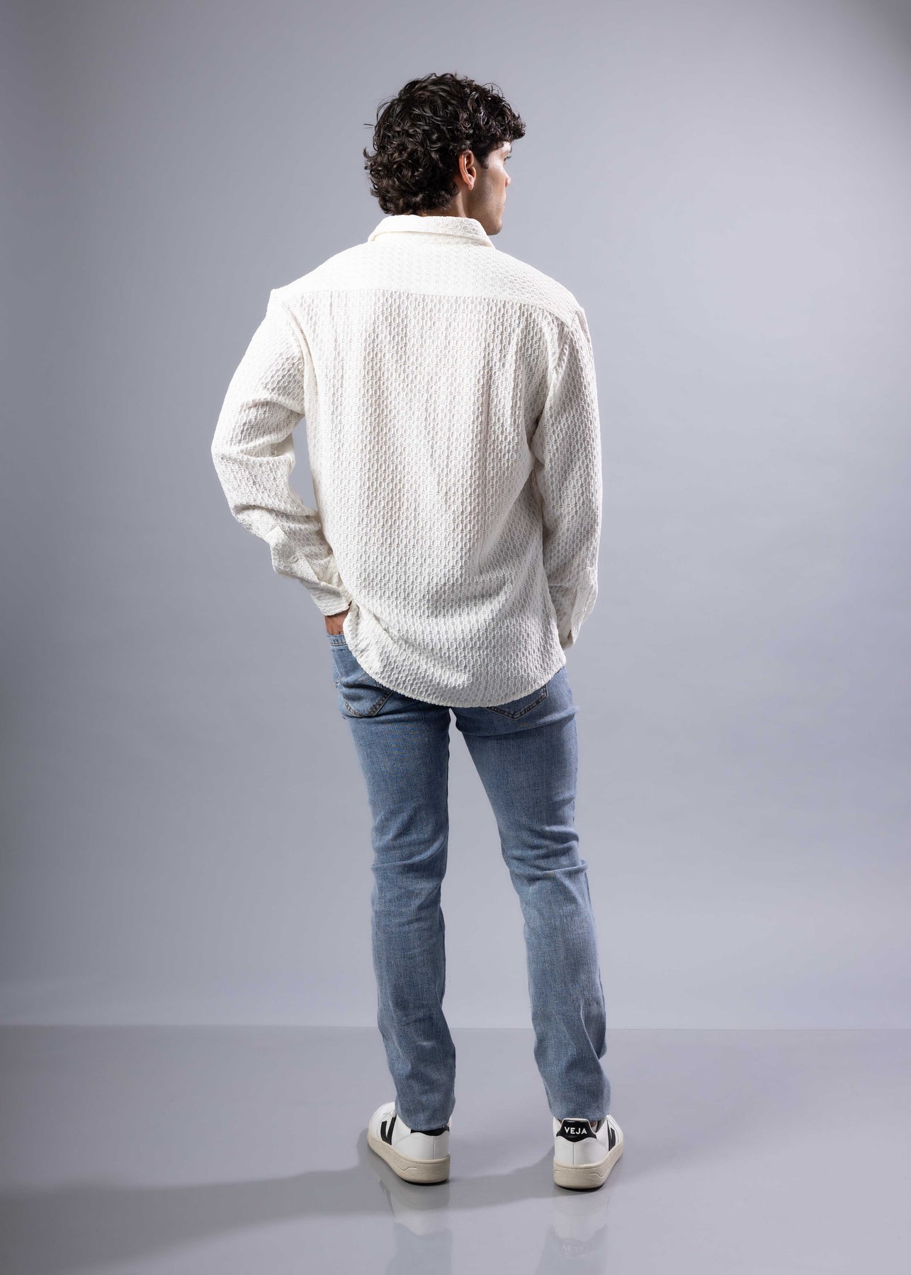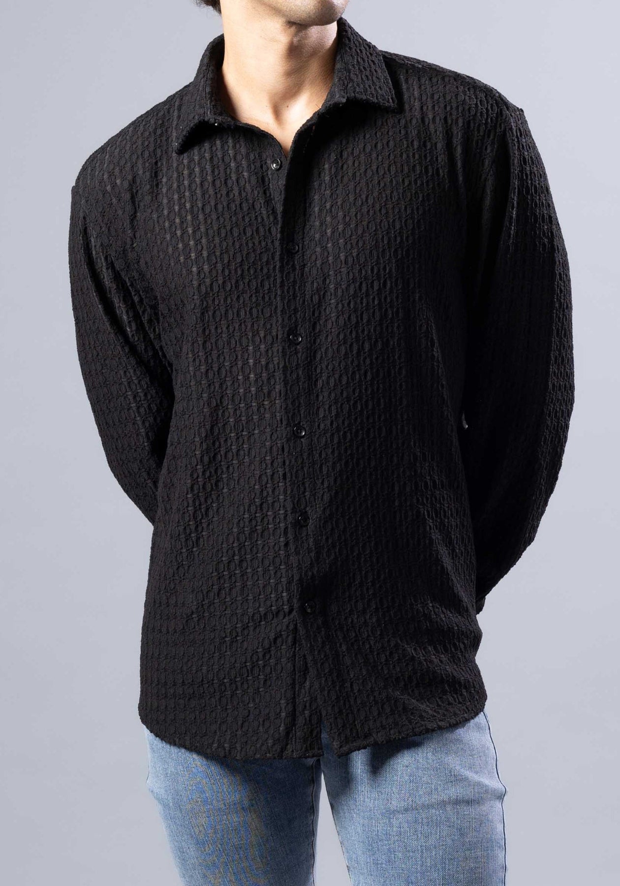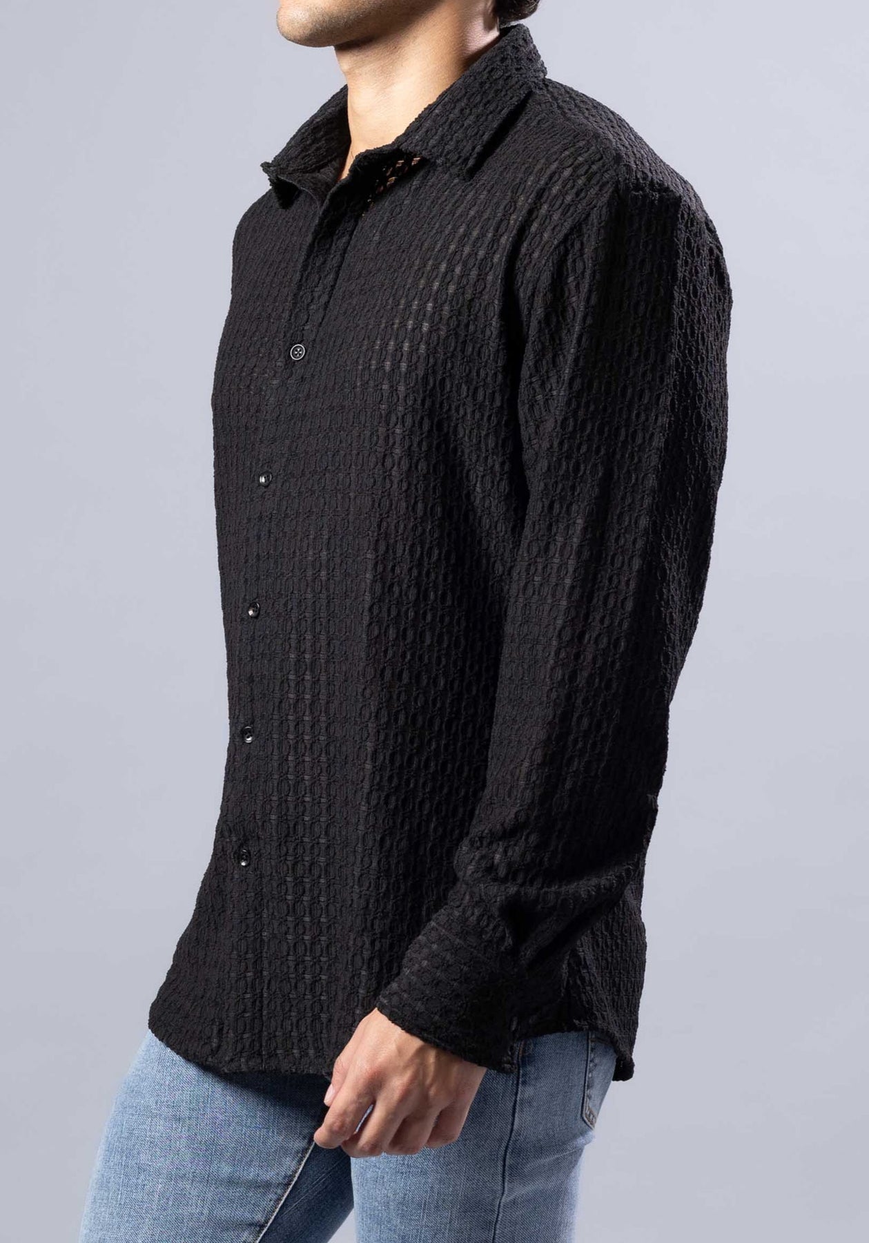 This long sleeve shirt features a diamond-knit textured fabric that feels soft yet structured. Designed for everyday wear, it strikes the perfect balance between laid-back and put-together. Button it up for dinner or leave it open over a tee for weekend plans.