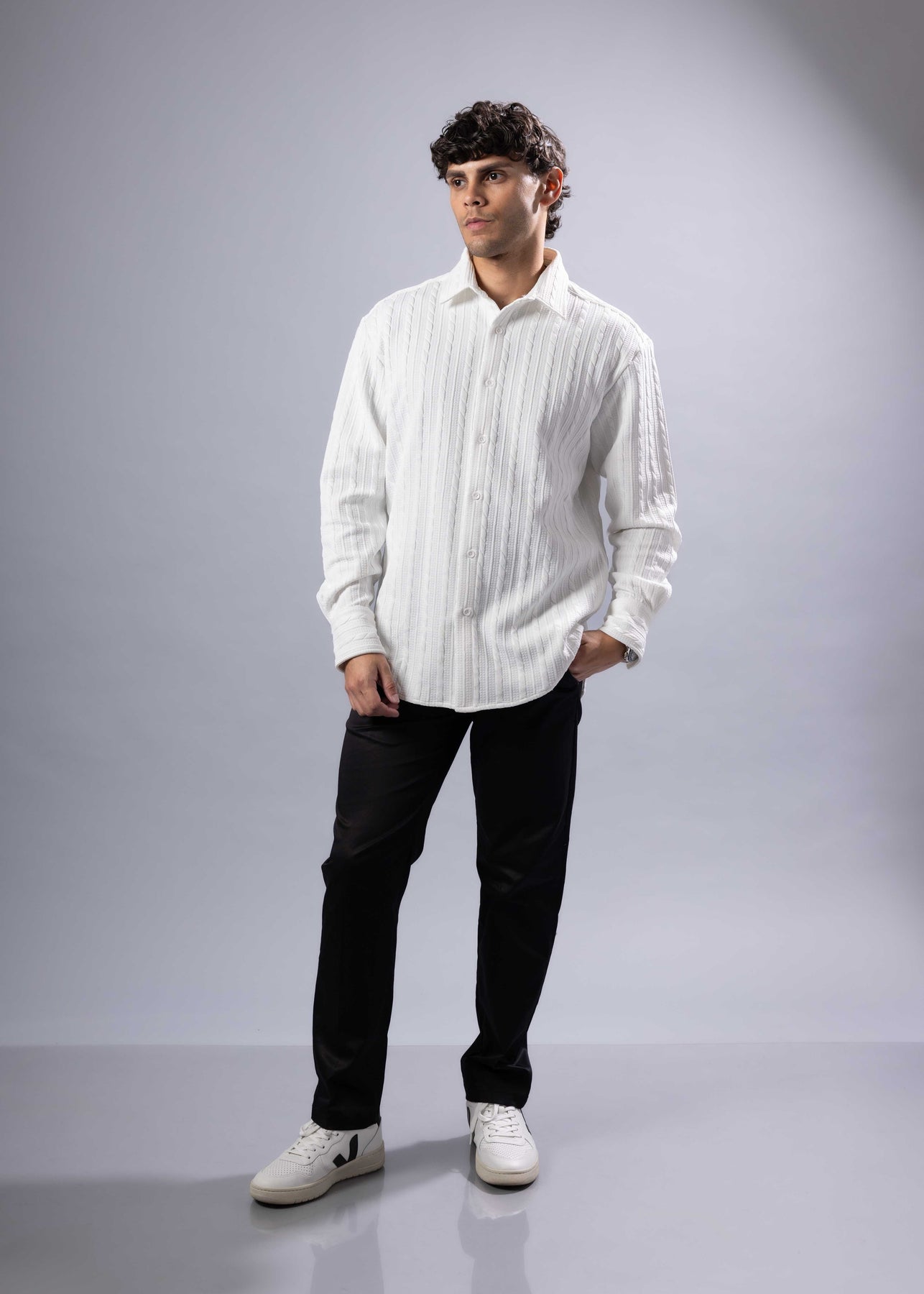 Elevate your everyday essentials with our Textured Long Sleeve Button-Up Shirt from Bespoke Moda. Designed for the modern man, this shirt features a subtly raised striped pattern that adds dimension and sophistication to your look without overpowering it.