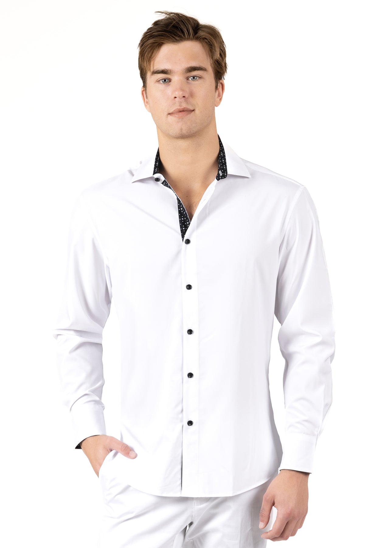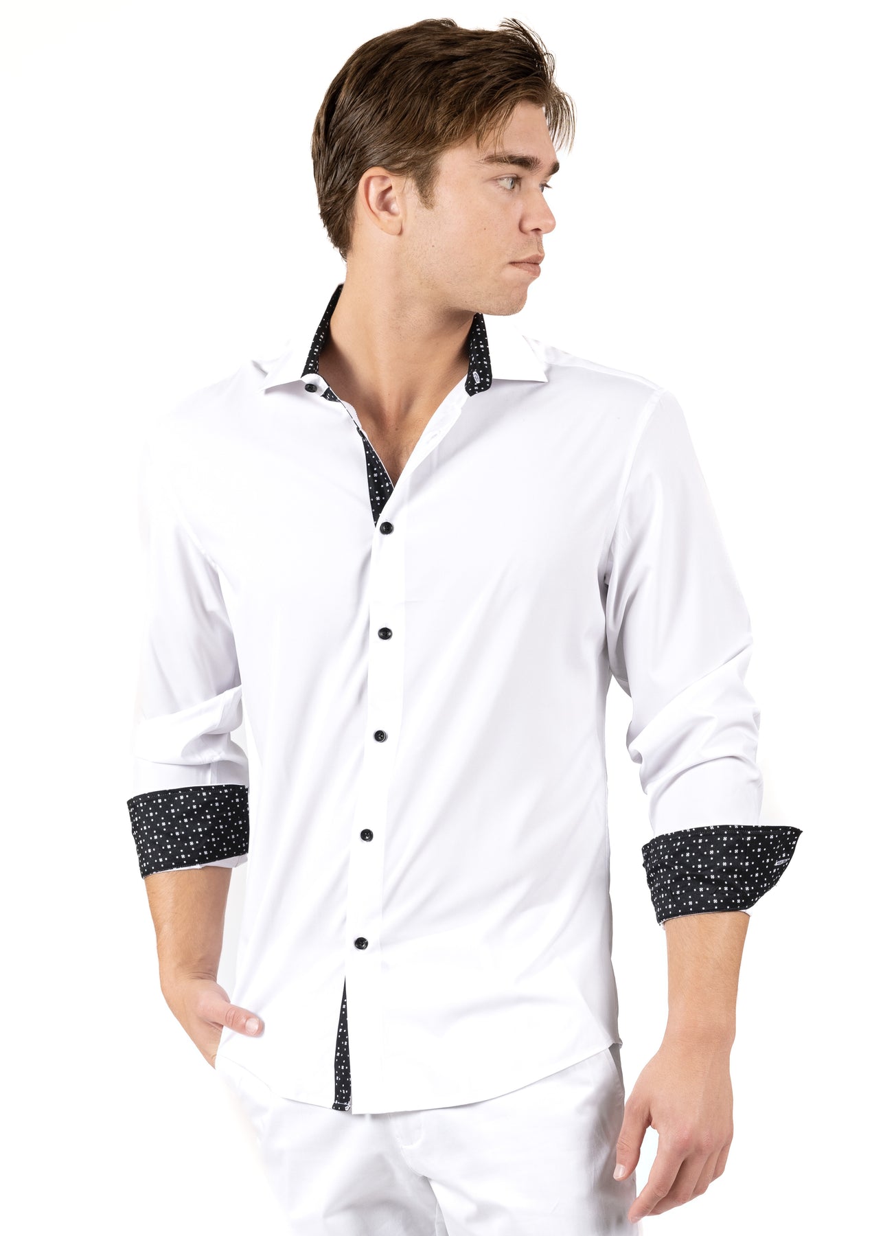 Our signature dress shirts - are popular for a reason. As our name suggests, Bespoke is committed to offering apparel that may as well be tailor made just for you. The Modern Fit is a hybrid between Slim and Classic Fit. With one-of-a-kind patterns, you’re sure to stand out at the next office Happy Hour. Style with a jacket or wear by itself.