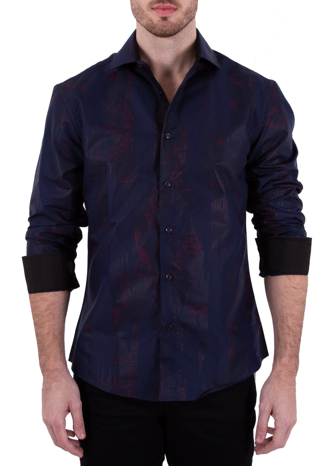 Men's Navy and Red Shine Button Up Long Sleeve Dress Shirt