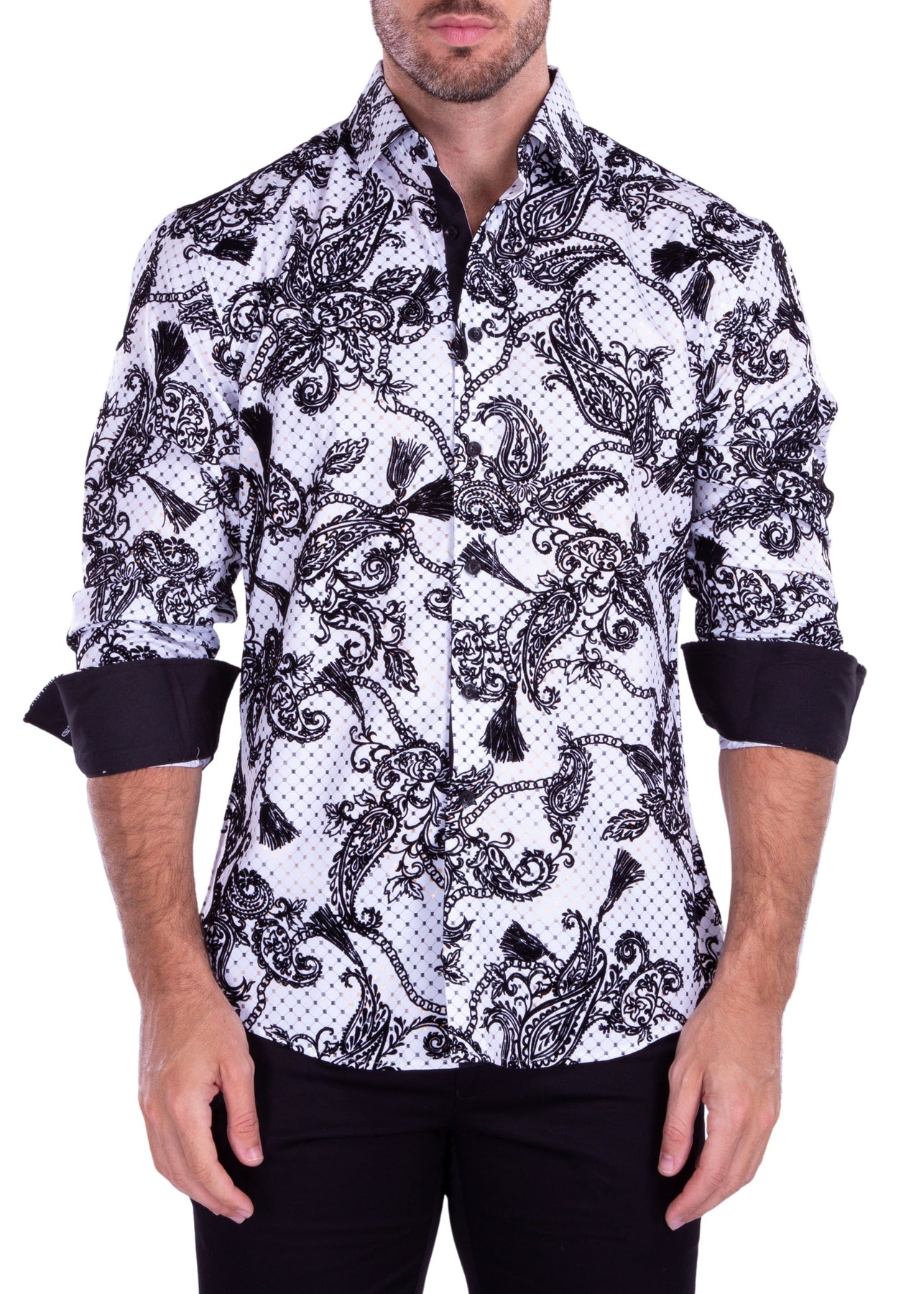 Paisley Velvet Metallic Windowpane Long Sleeve Dress Shirt White
