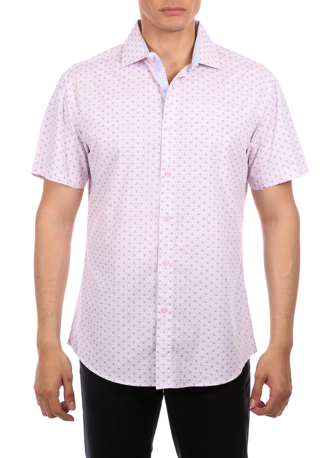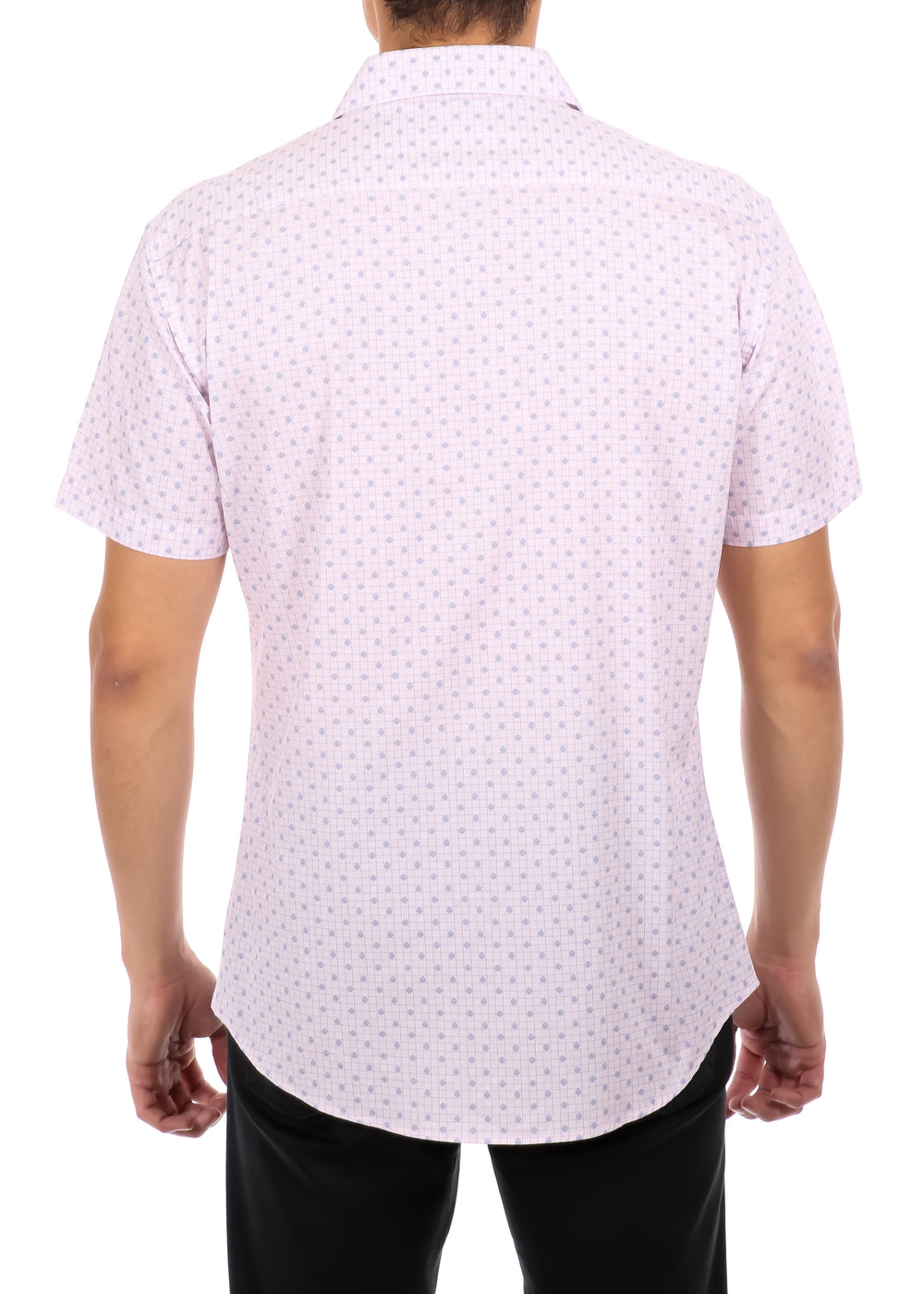 Dashed Dots Short Sleeve Dress Shirt Pink