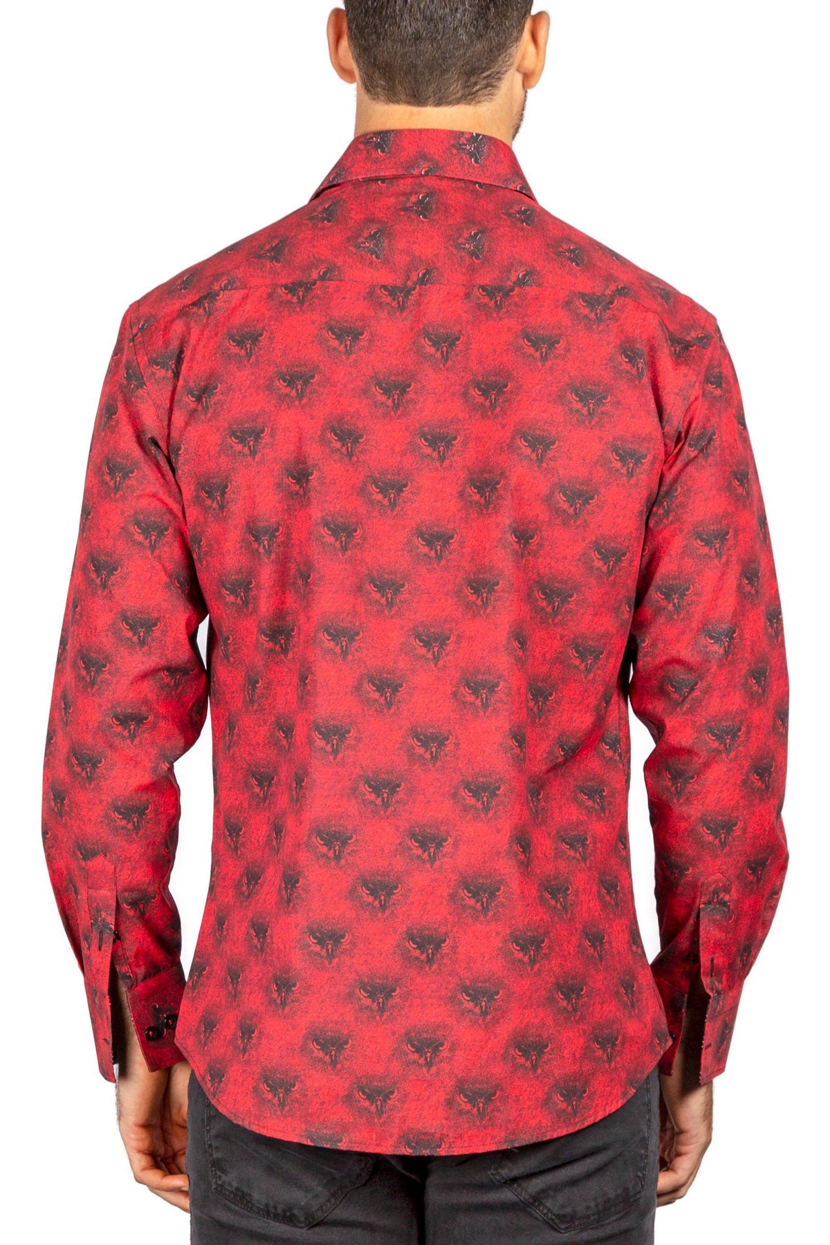 Night Owl Printed Long Sleeve Button Up Dress Shirt Red
