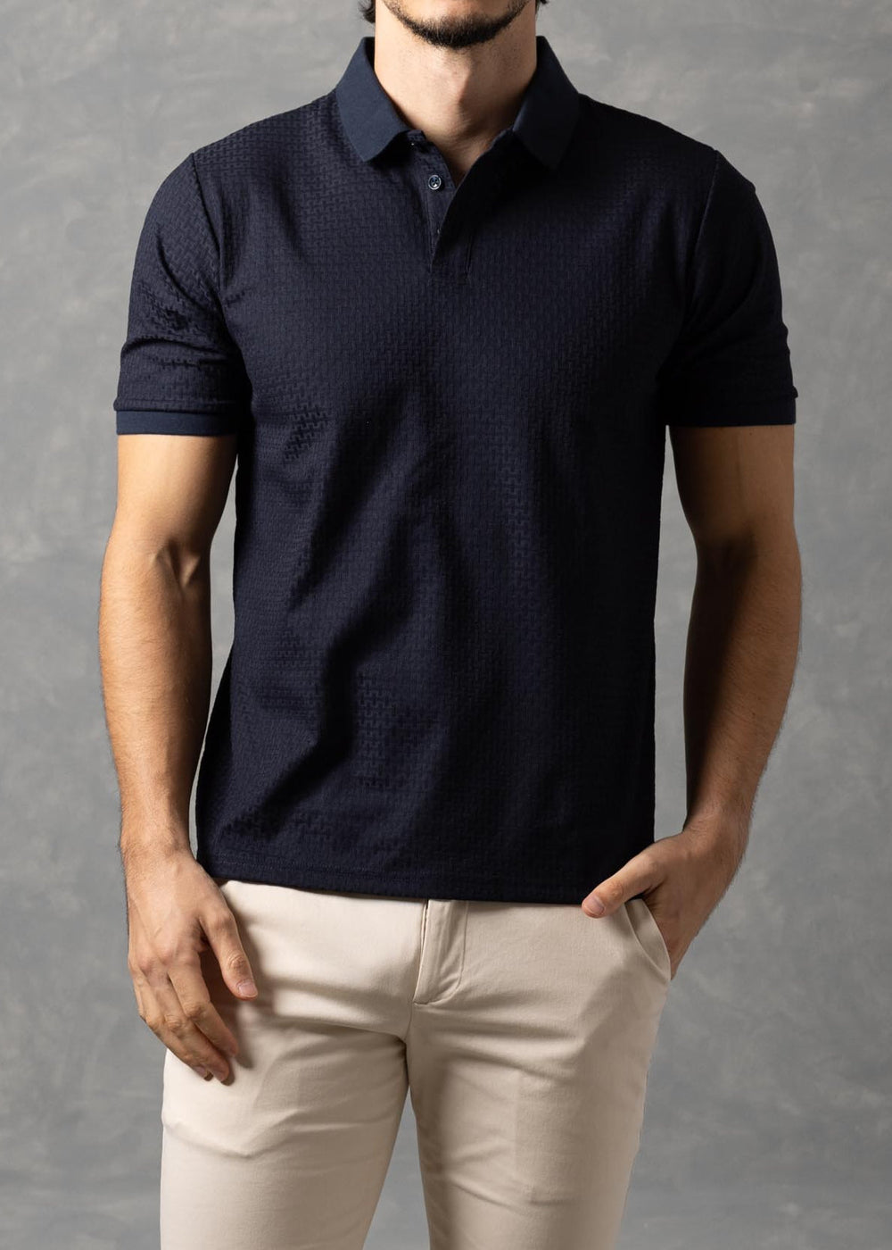 Basketweave Textured Knit Polo Shirt