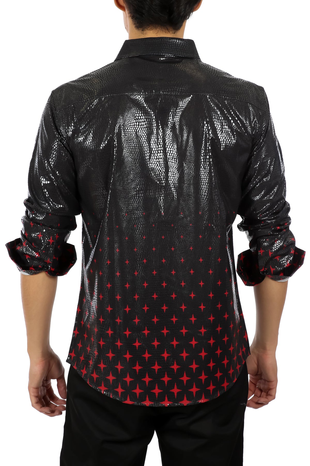 Halftone Metallic Print Button Up Long Sleeve Dress Shirt