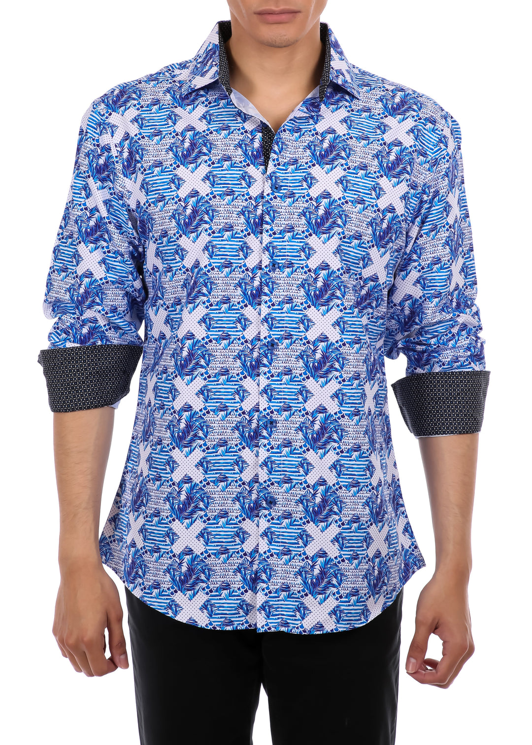 Men's Abstract Print Button Up Long Sleeve Dress Shirt