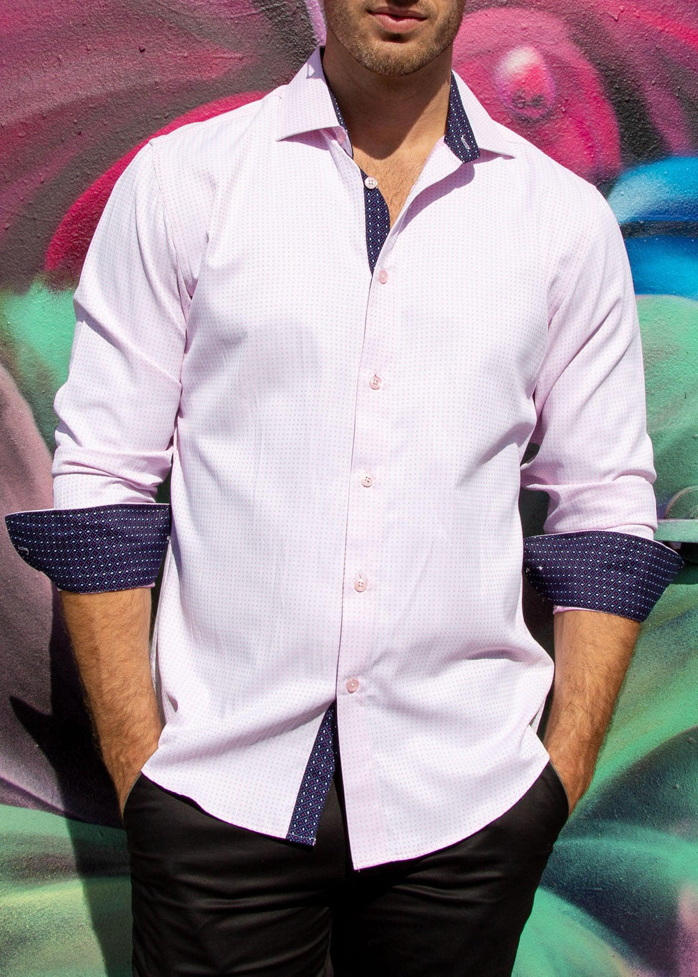 Navy Metallic Button Up Long Sleeve Dress Shirt