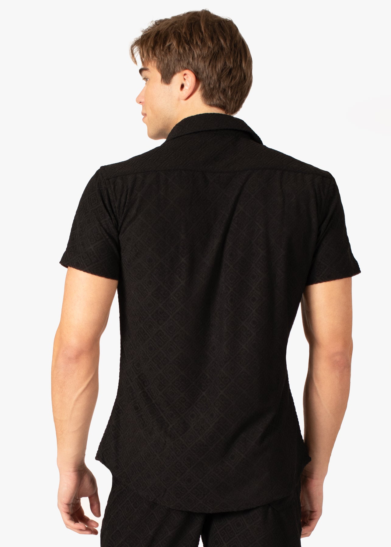 Diamond Weave Button-Up Short Sleeve Shirt