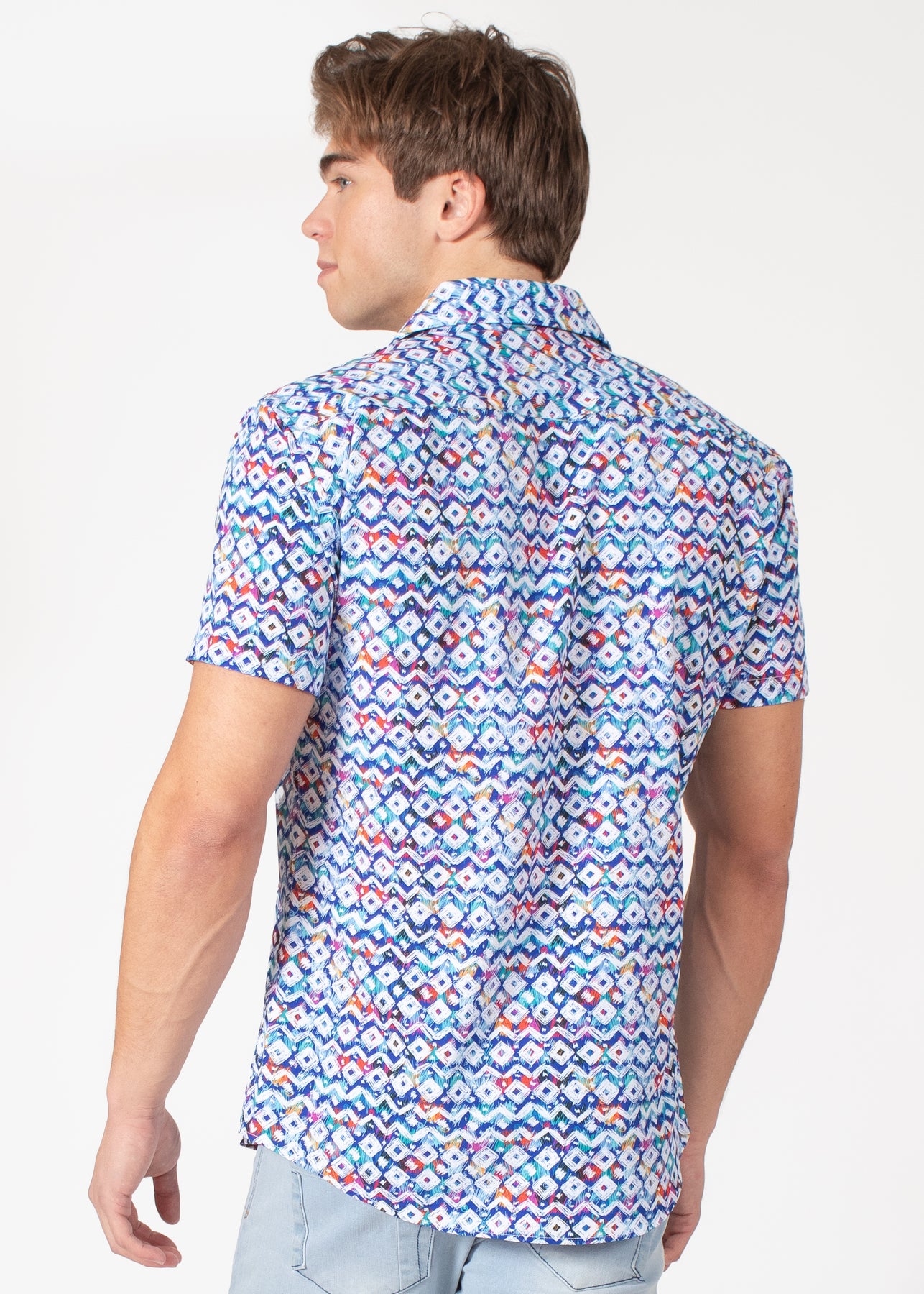 Short Sleeve Dress Shirt with Geometrical Print