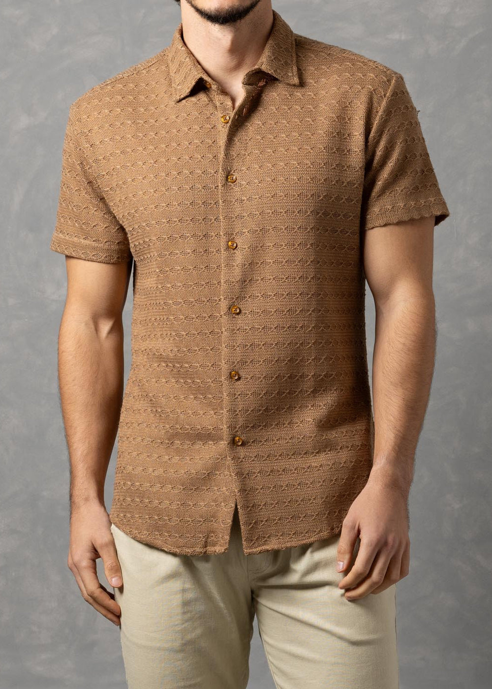 Desert Texture – Micro Knit Short Sleeve Button-Up Shirt