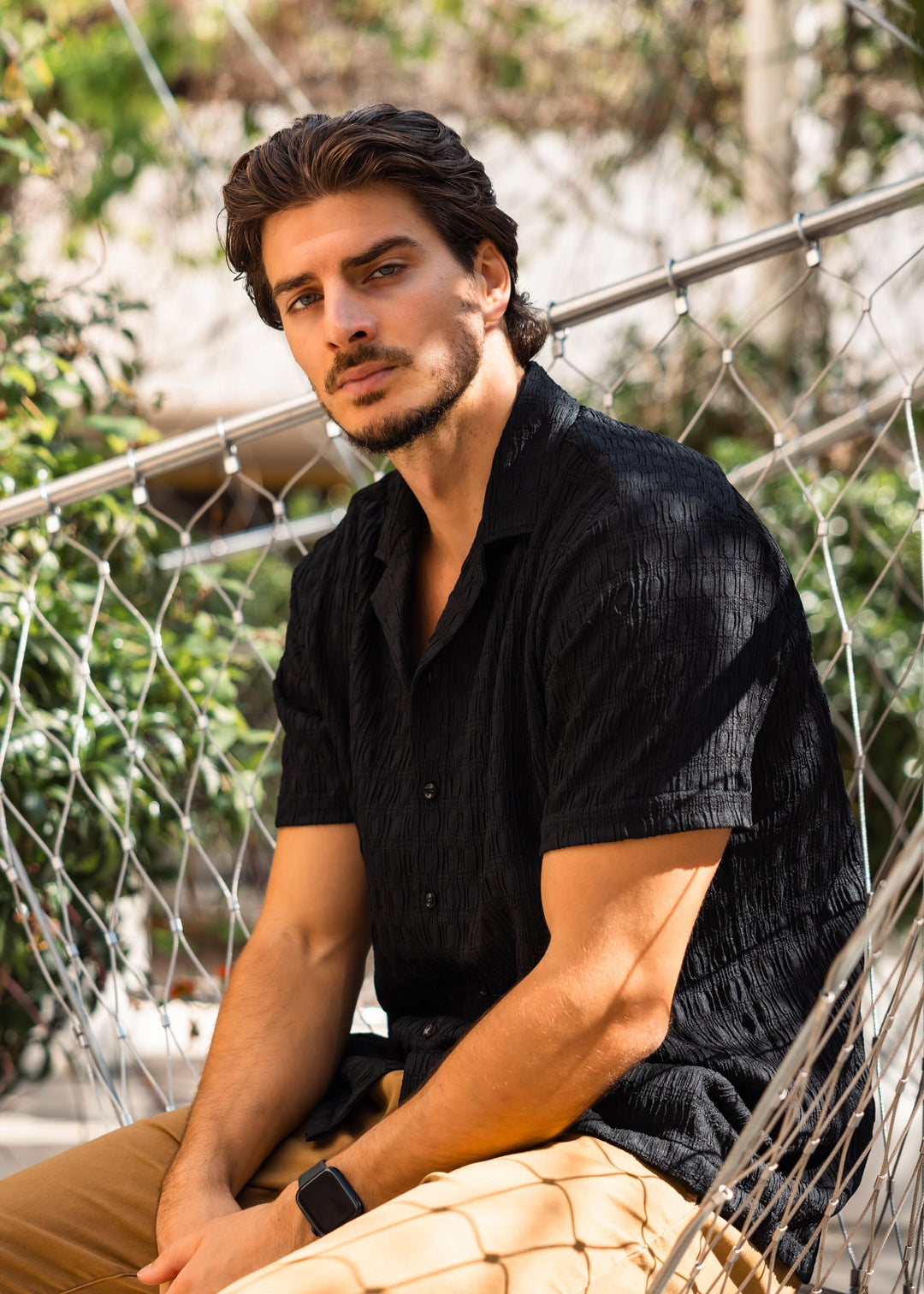 Palm Haven Shirt – Tropical Print Popcorn texture Short Sleeve Button-Up
