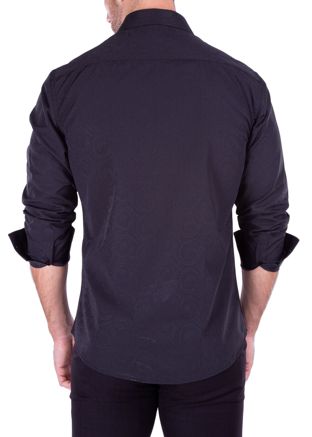 Pointillist Swirl Texture Long Sleeve Dress Shirt Solid Black