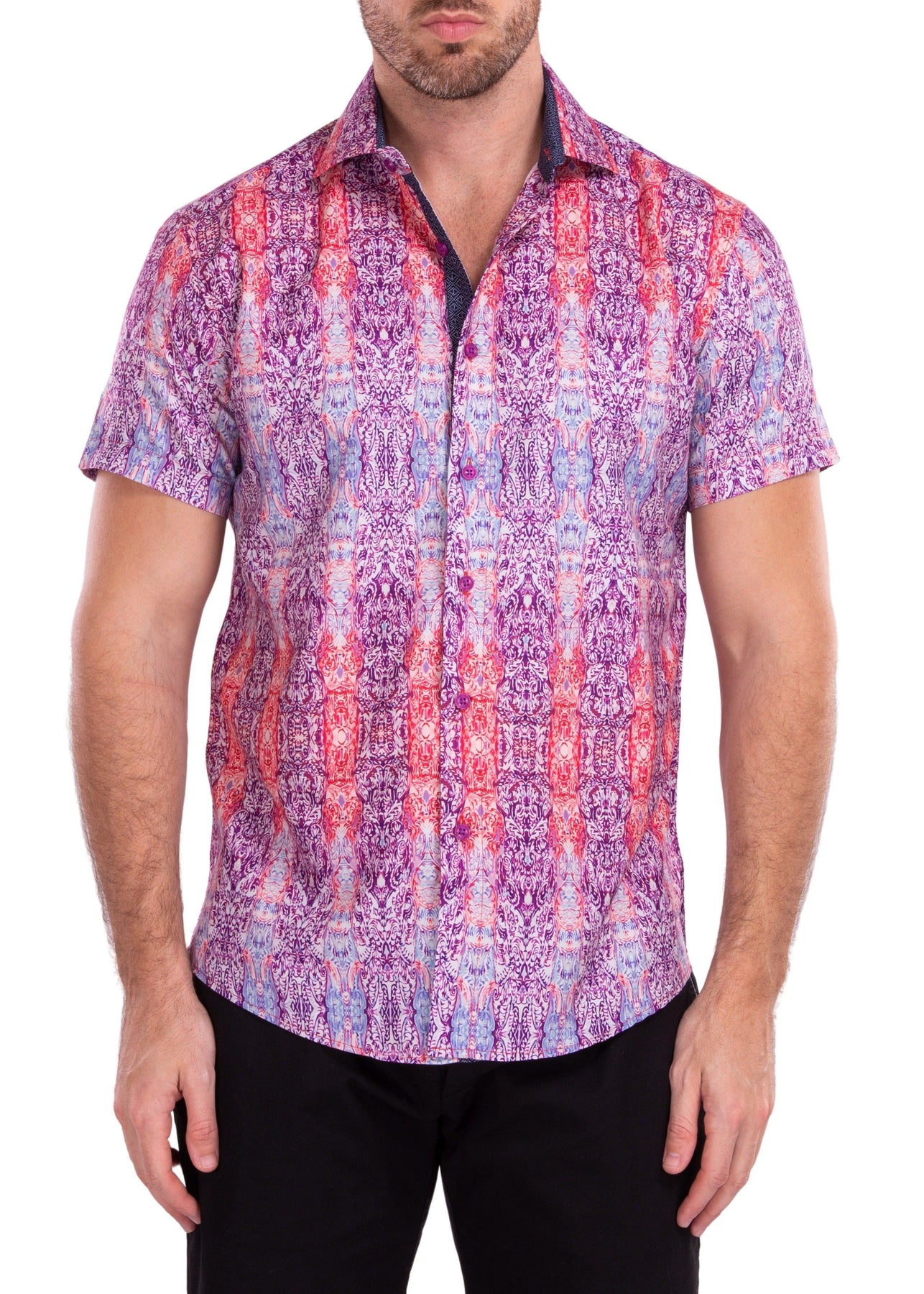 Psychedelic Kaleidoscope Boho Print Red Button Up Short Sleeve Dress Shirt