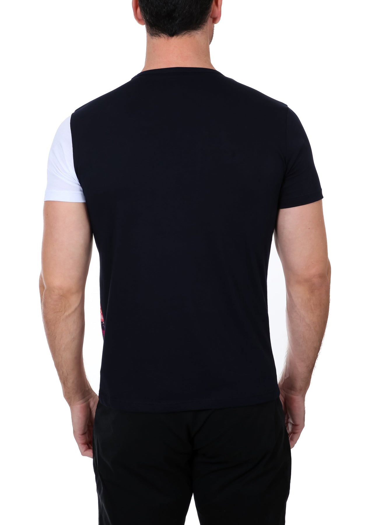 Hibiscus Floral Contrast Color Block Graphic Tee Navy