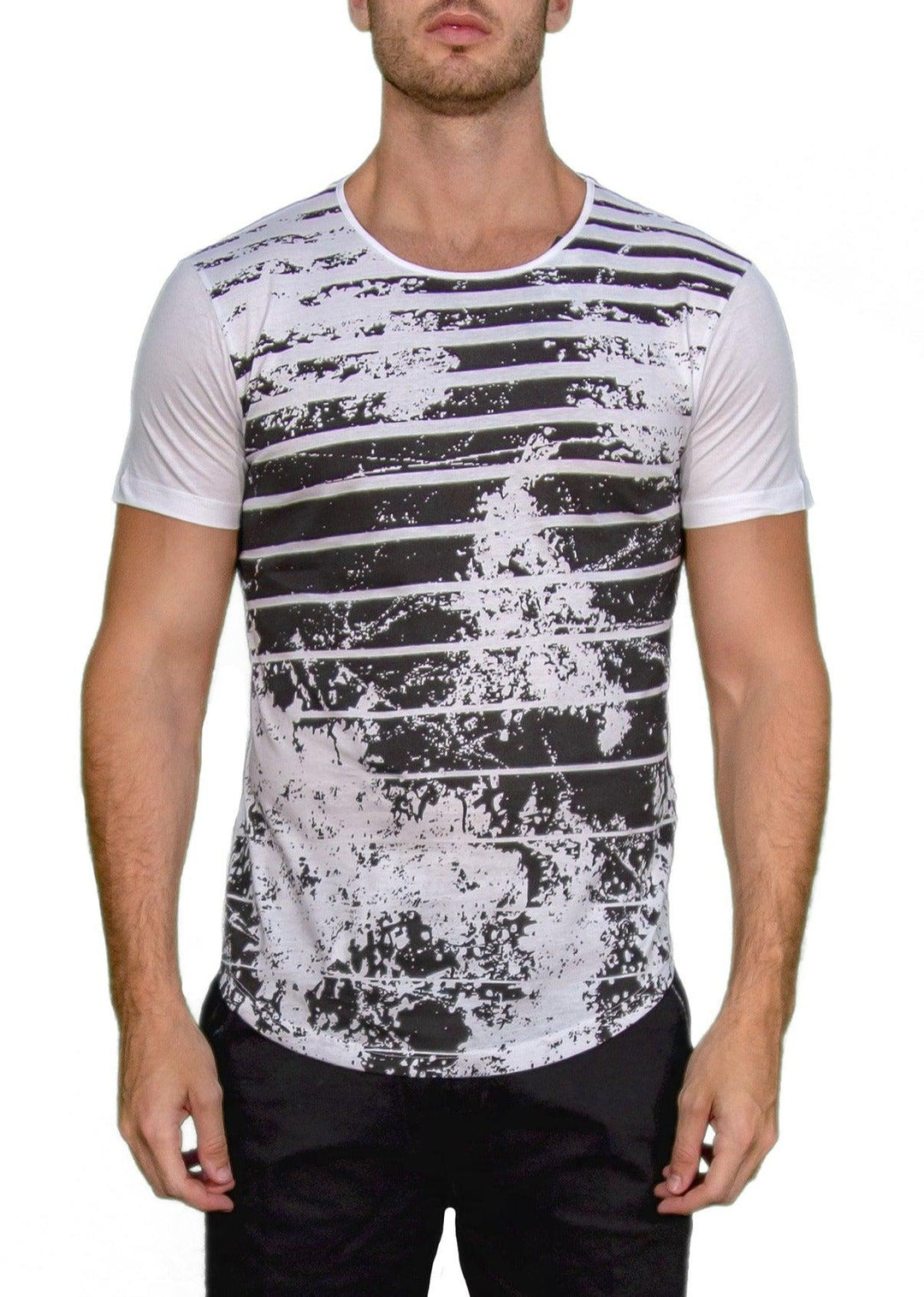 Vintage Black Stripe Gradient Graphic Tee White