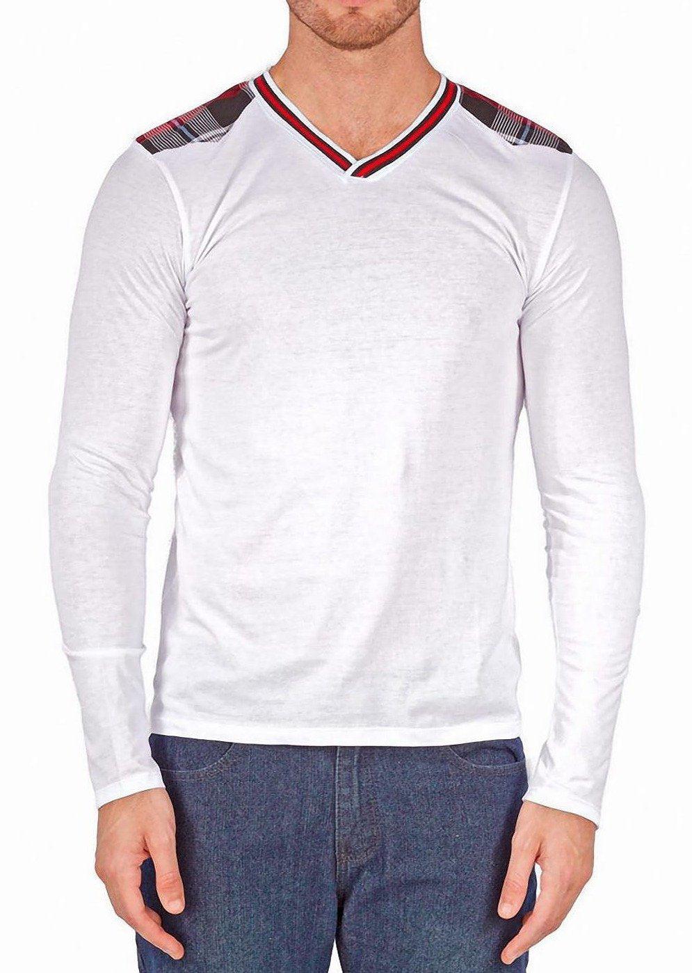 Plaid Shoulder Long Sleeve T-Shirt White