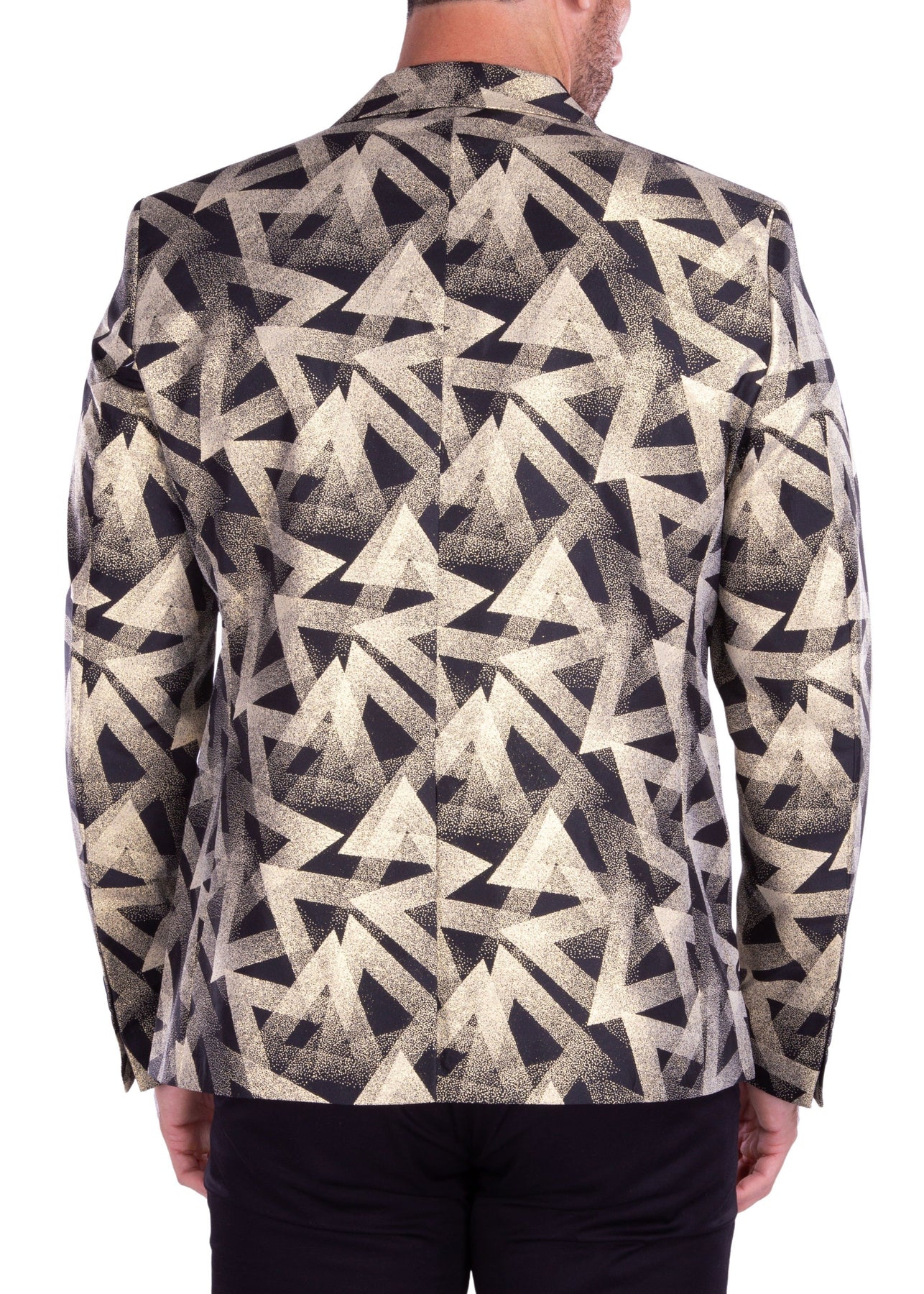 Gold Art Deco Triangle Pattern Evening Blazer Black